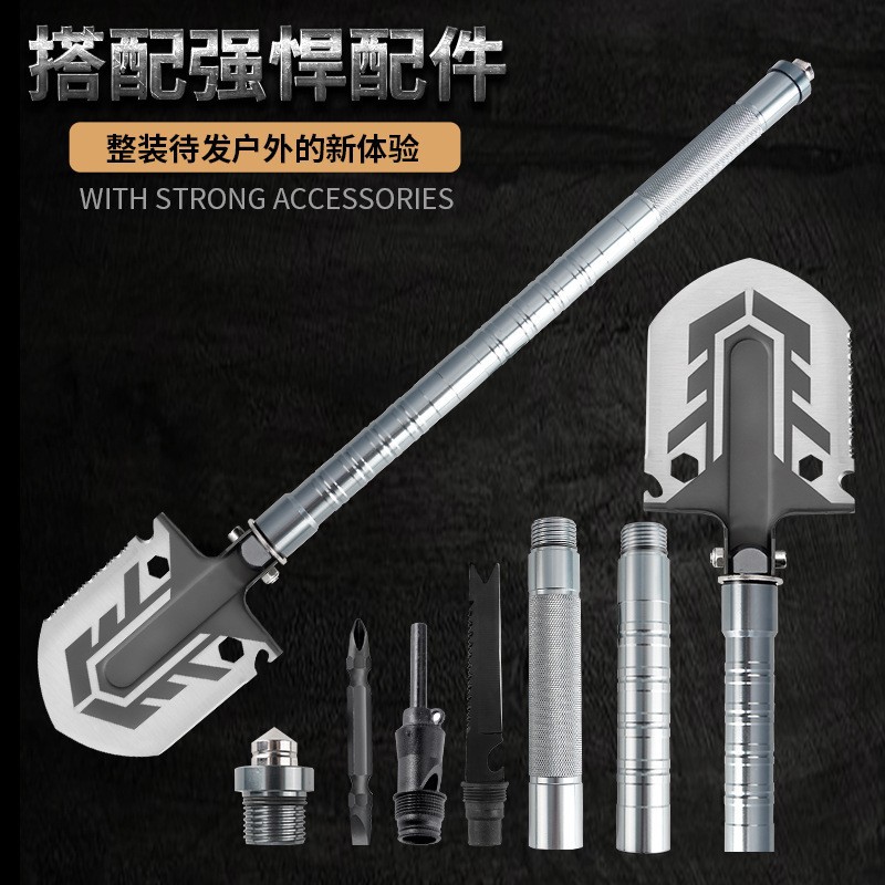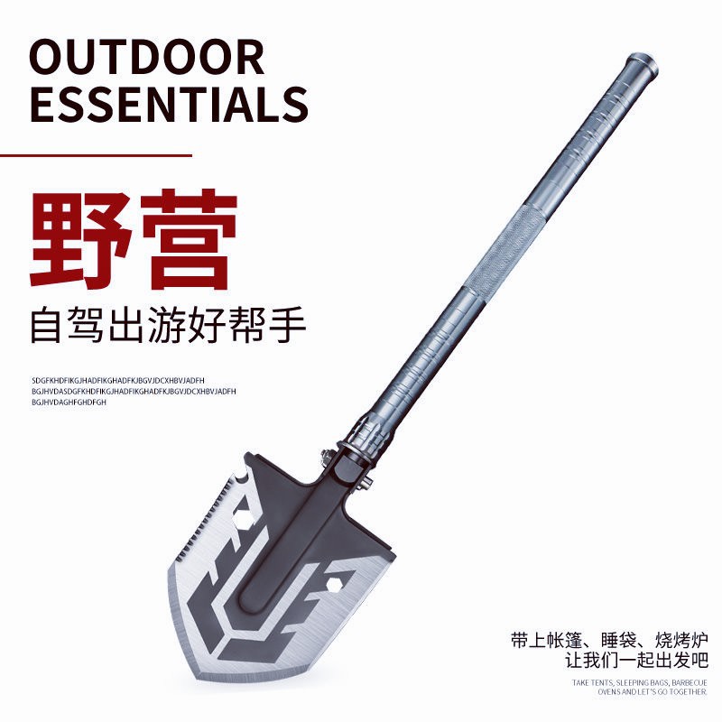 户外跨境热销多功能工兵铲车载折叠军工铲锰钢兵工铲加厚野营用品