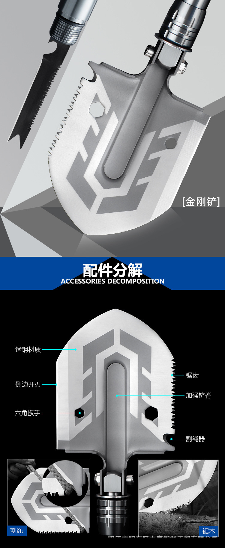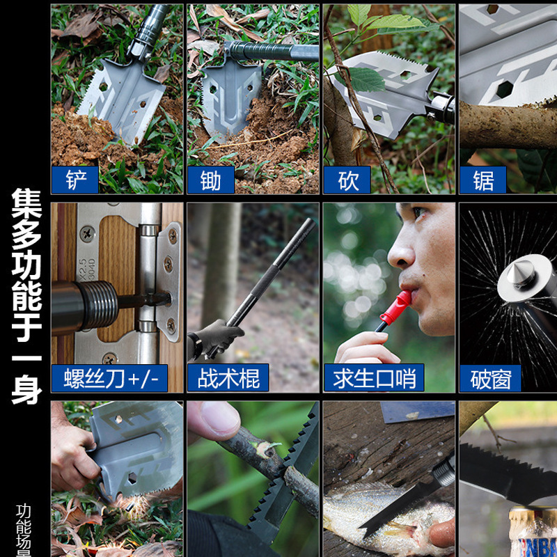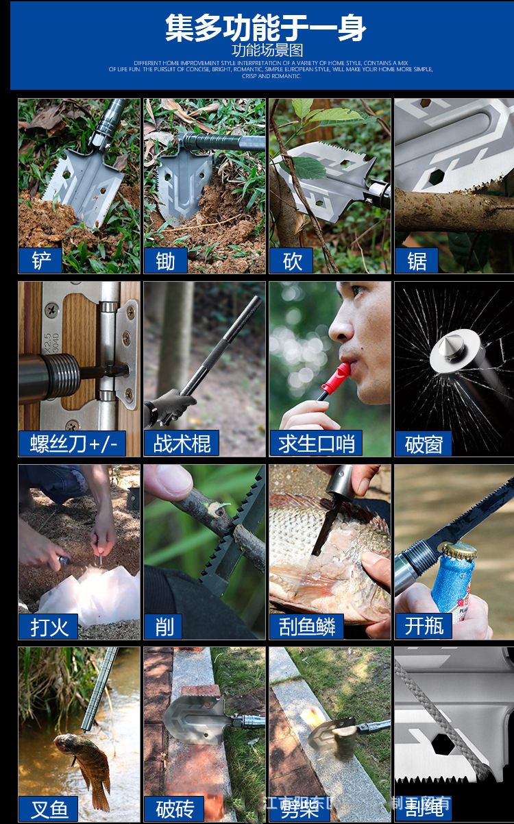 户外用品亚马逊热卖工兵铲多功能兵工铲折叠军工铲子铁锹野营工具