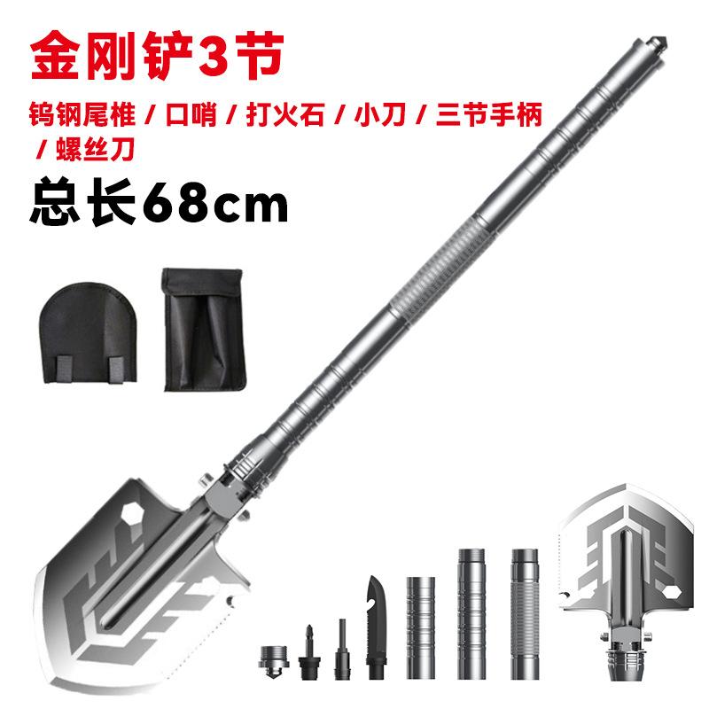 工兵铲子多功能户外用品亚马逊热卖打火石野营求生装备折叠军工铲