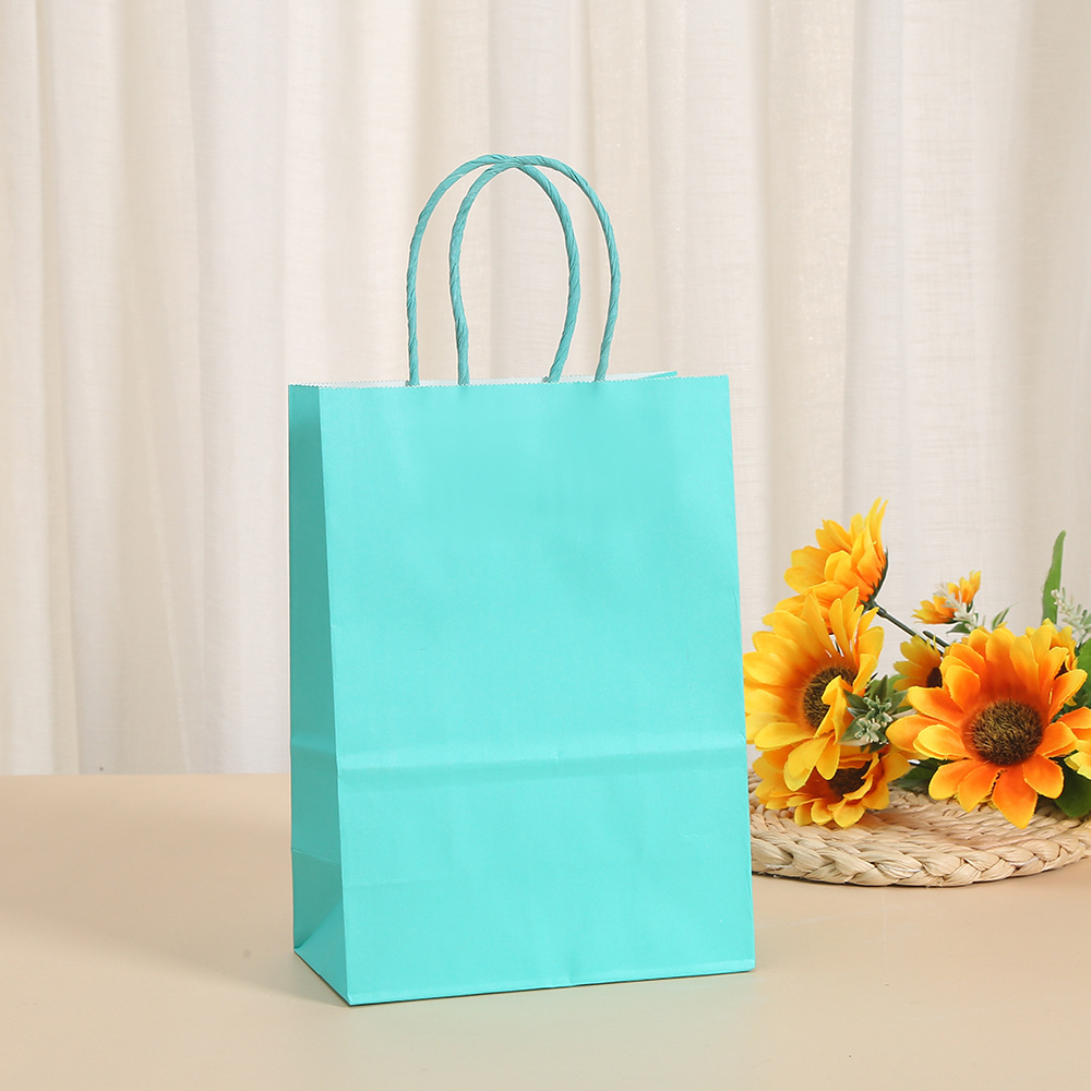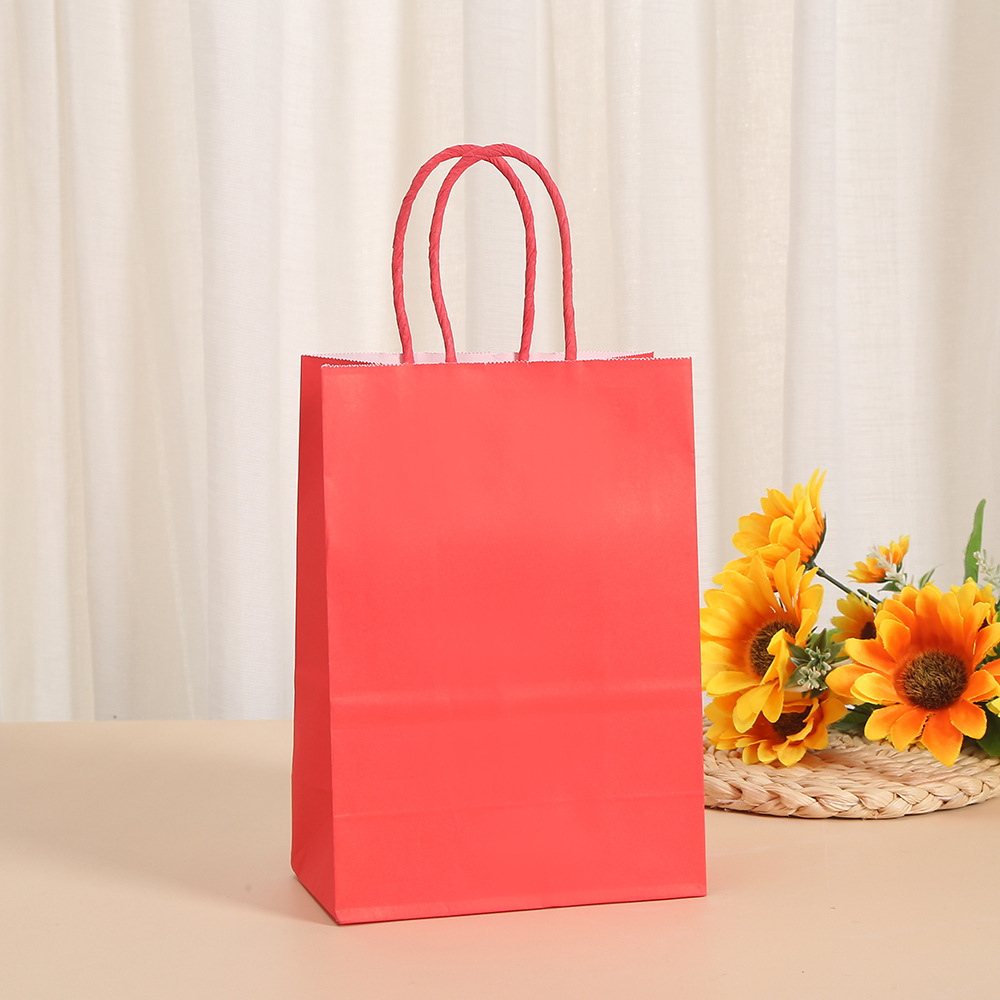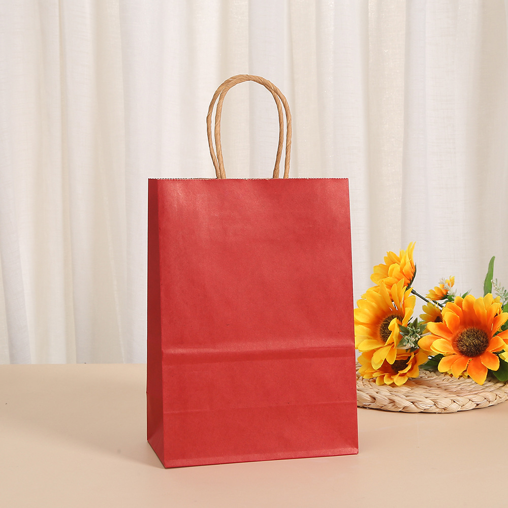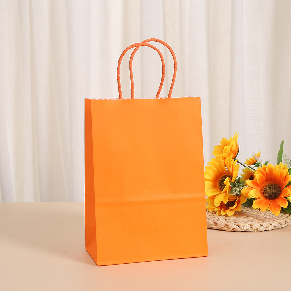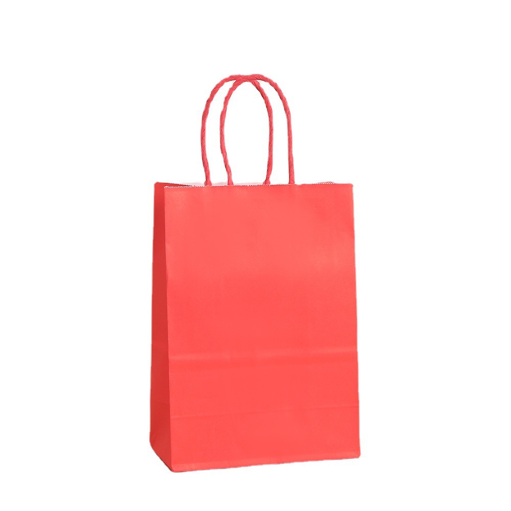 现货纯色牛皮纸外卖袋彩色手提绳喜糖袋手提纸袋子服饰礼品包装袋