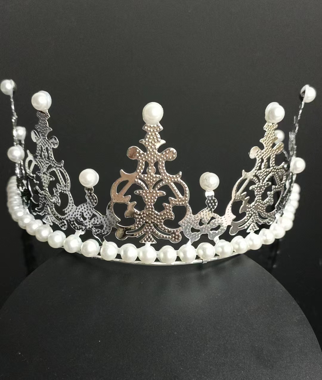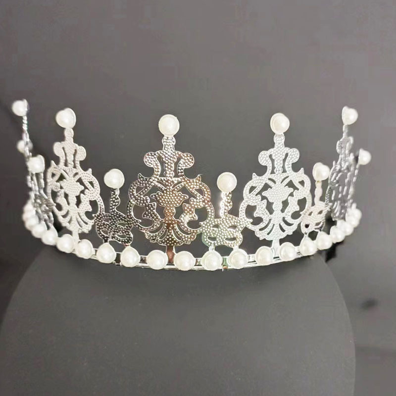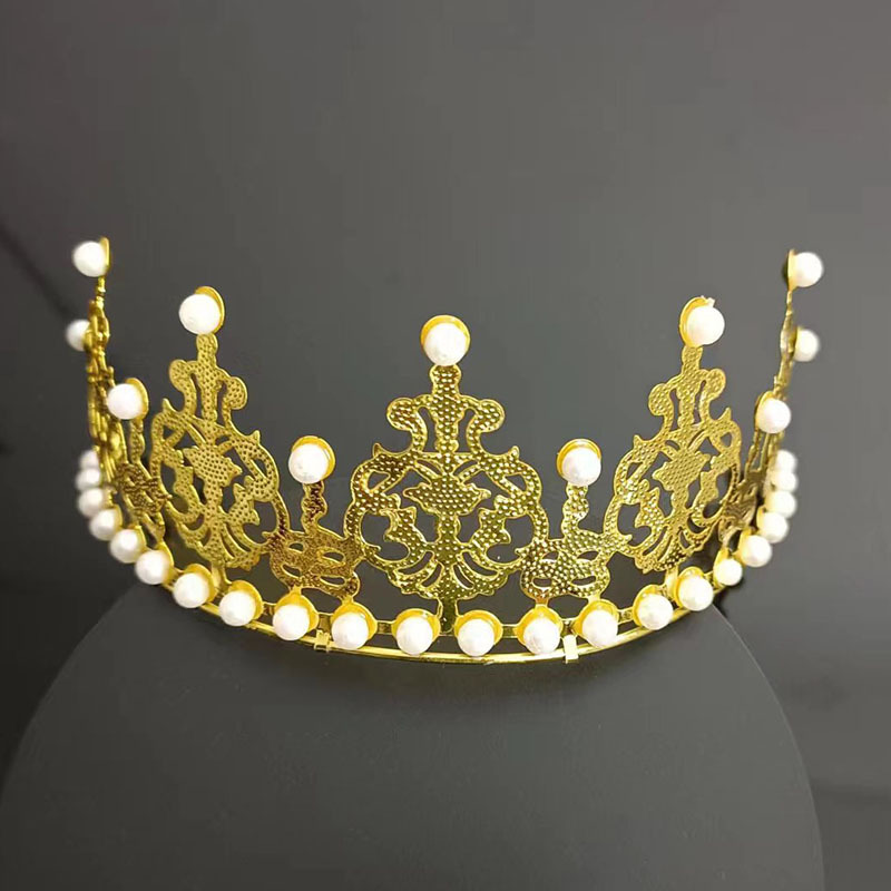批发金属鲜花珍珠大半圆时尚王冠 春季款铁皮蛋糕装饰大皇冠头饰