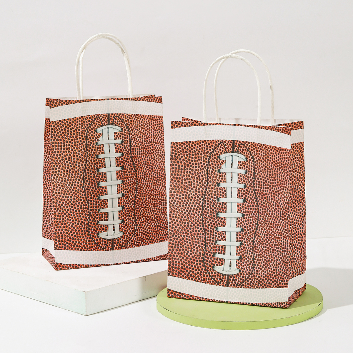 现货橄榄球主题手提纸袋 白牛皮纸彩色方底派对礼品包装袋子批发