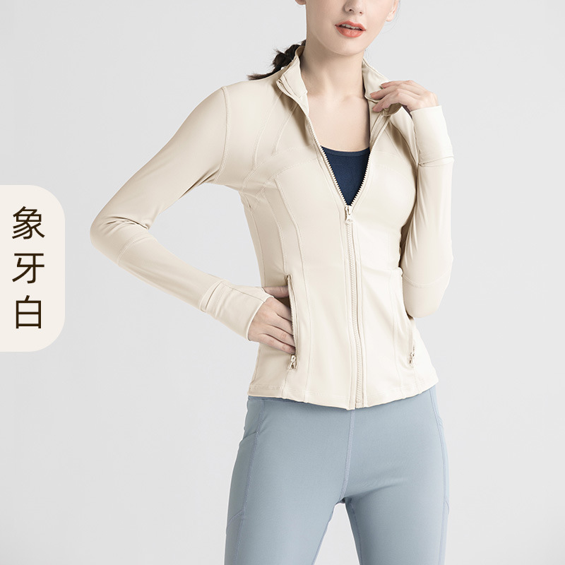 女速干透气弹力立领拉链口袋长袖上衣跑步运动健身瑜伽服外套