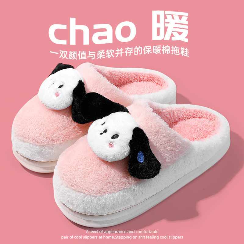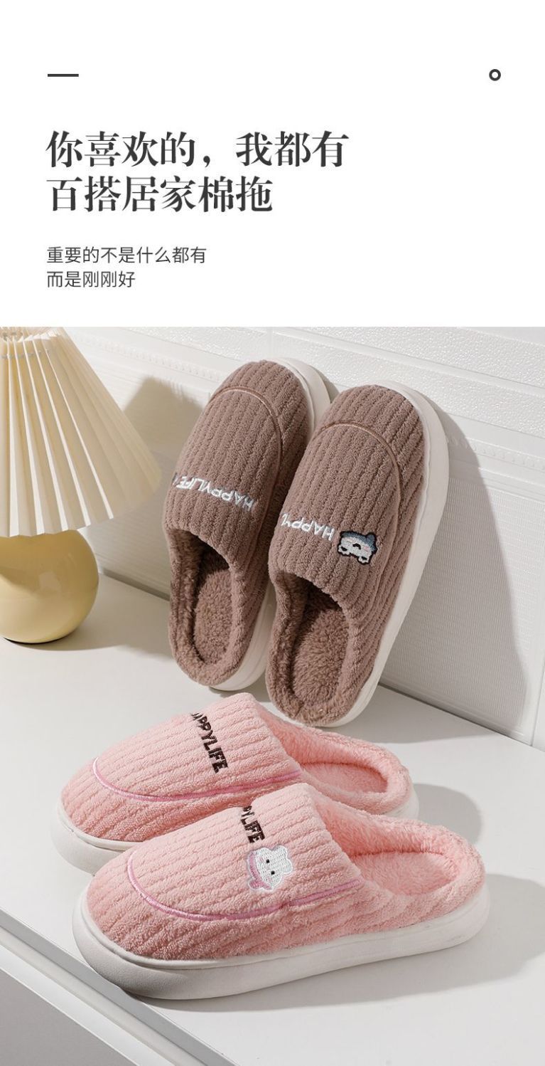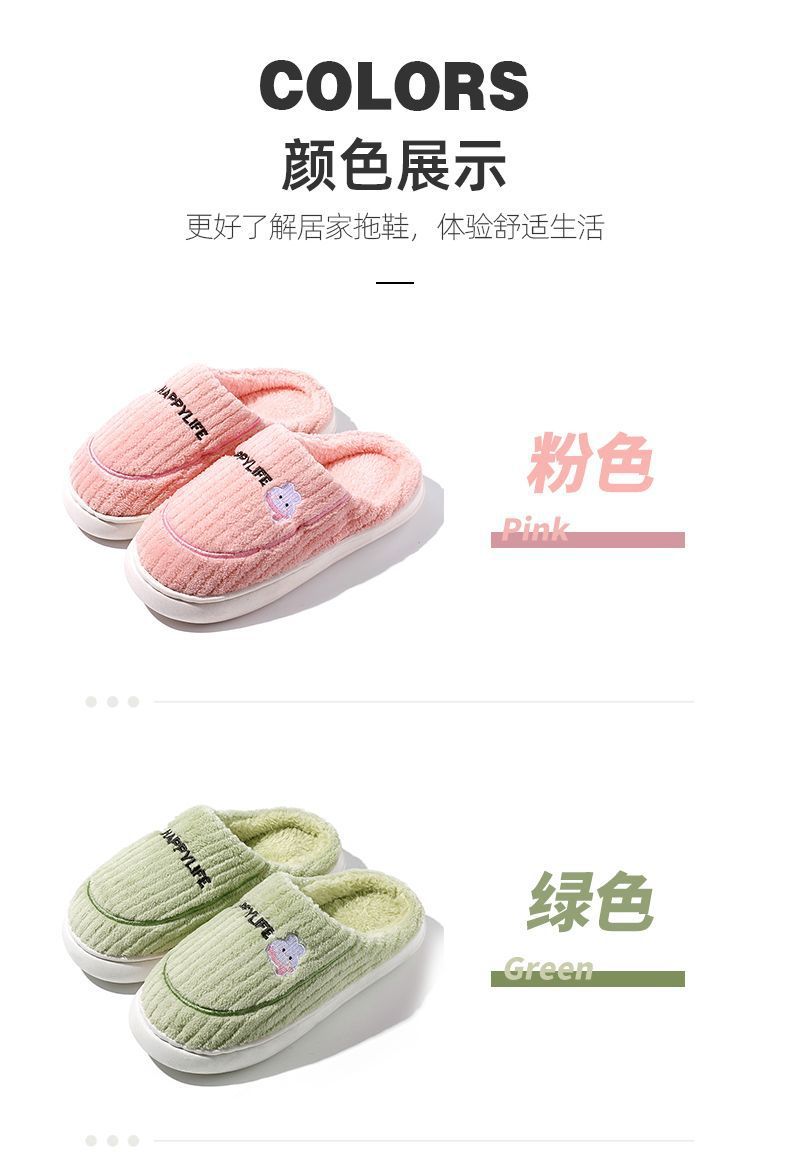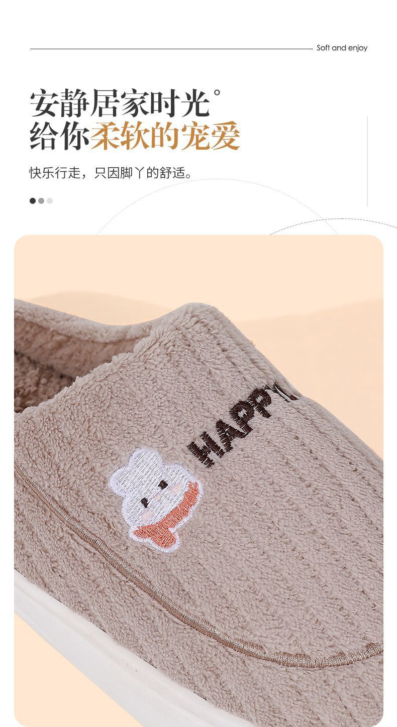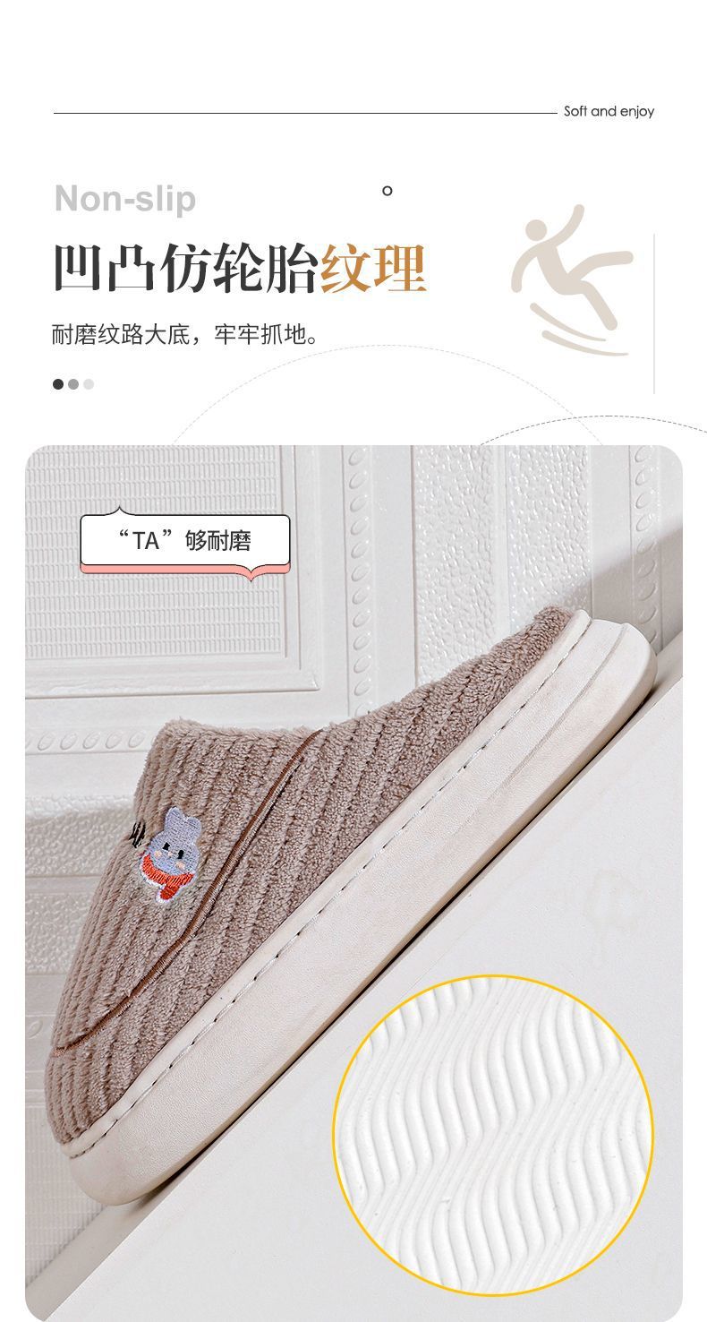 棉拖鞋冬季围巾兔围巾熊踩屎感棉拖女居家加绒保暖防滑情侣拖鞋男