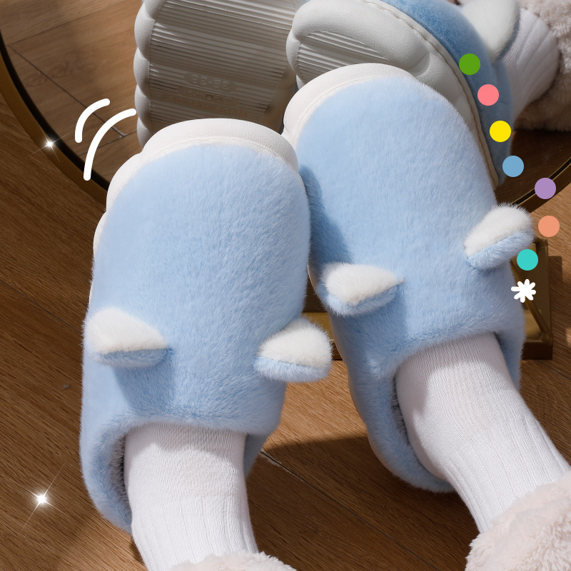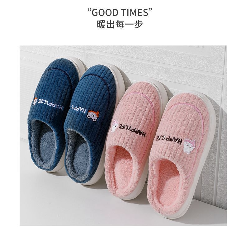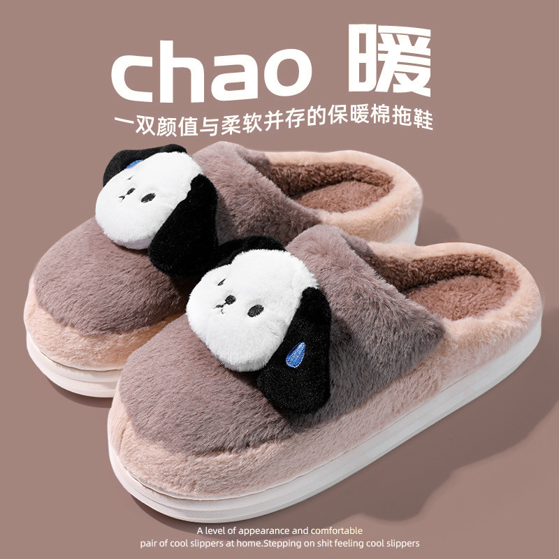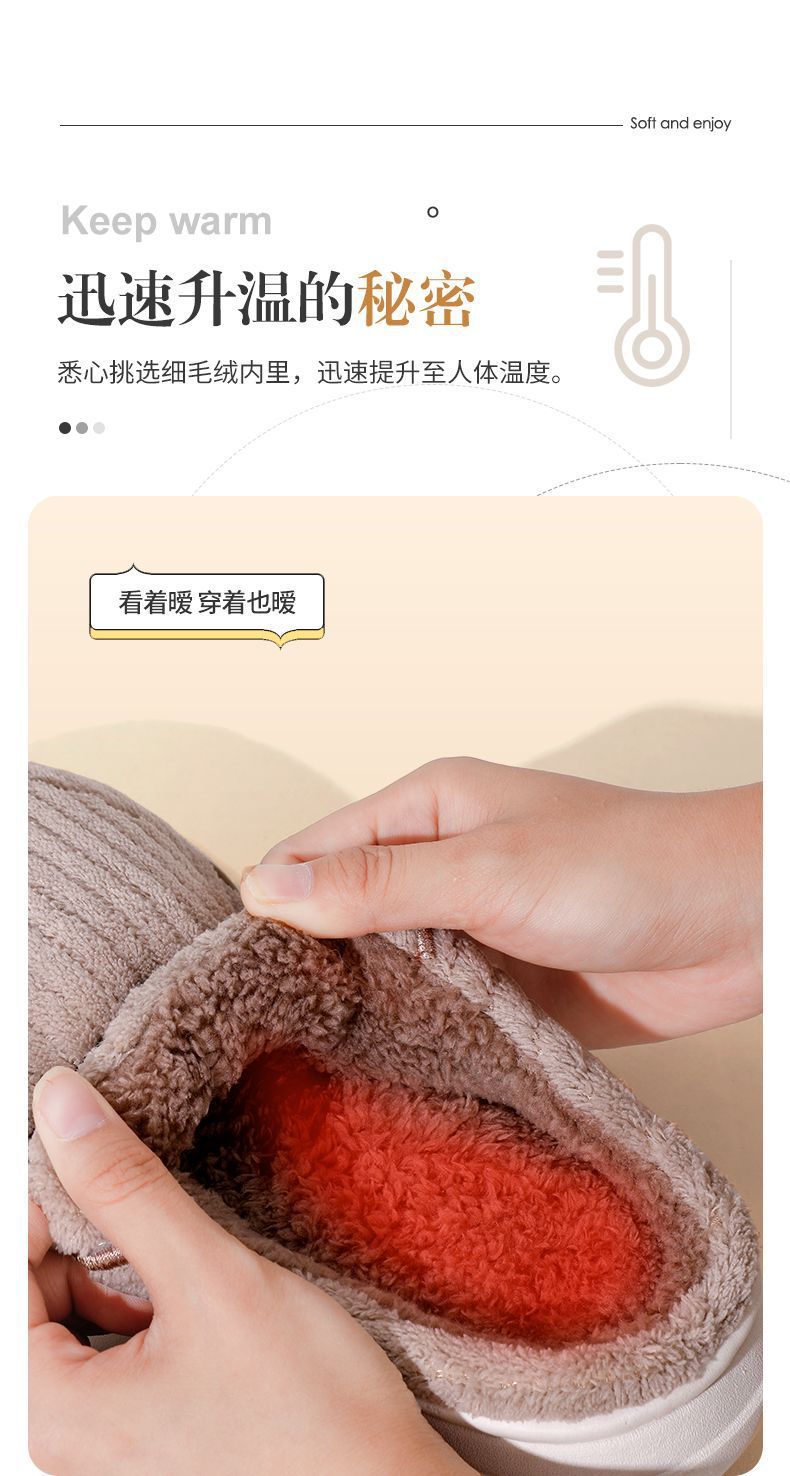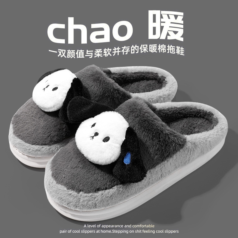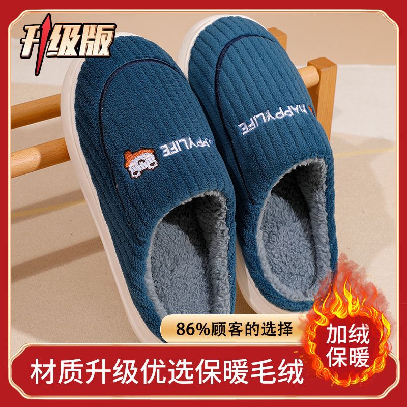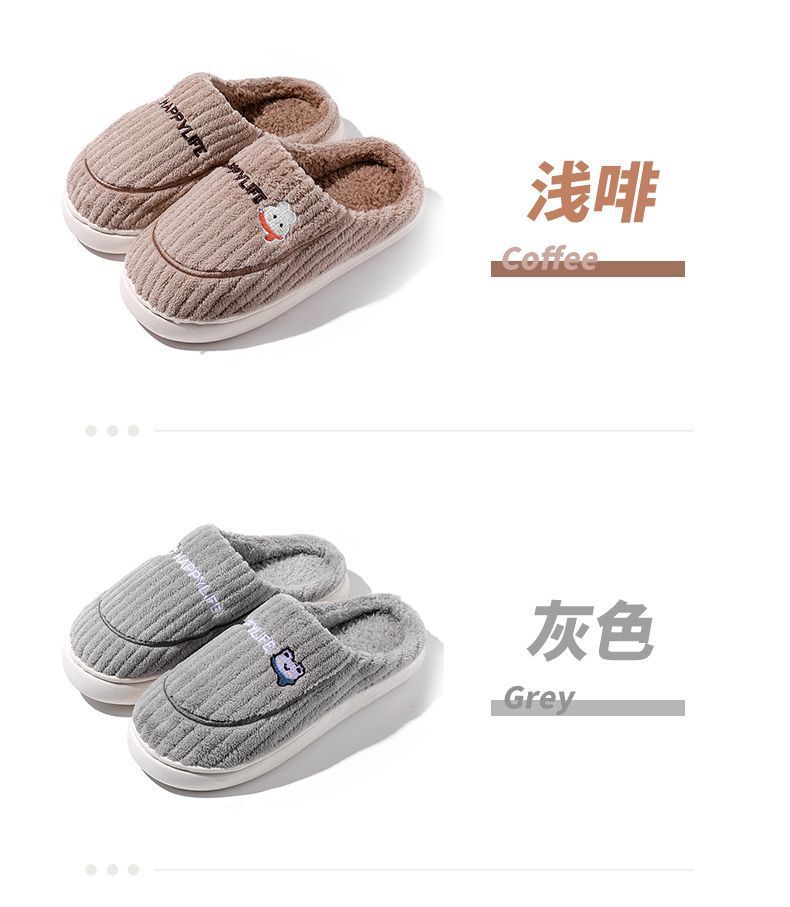 棉拖鞋冬季围巾兔围巾熊踩屎感棉拖女居家加绒保暖防滑情侣拖鞋男