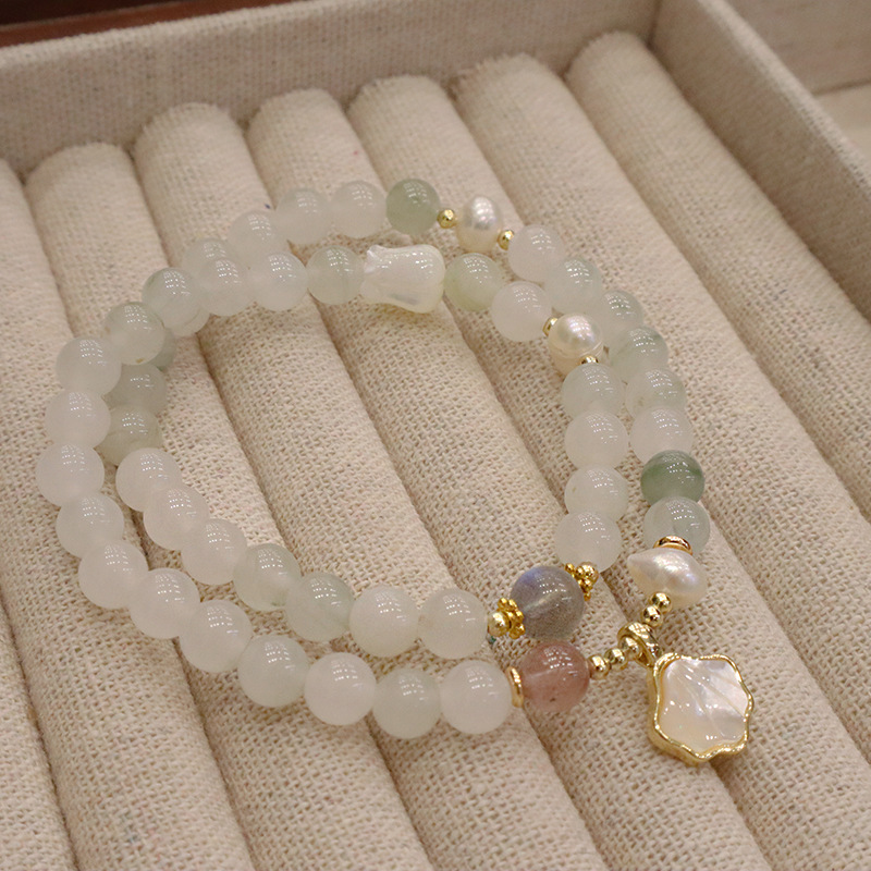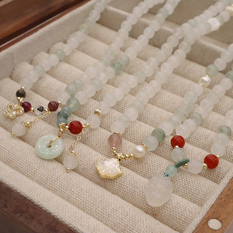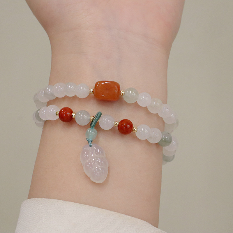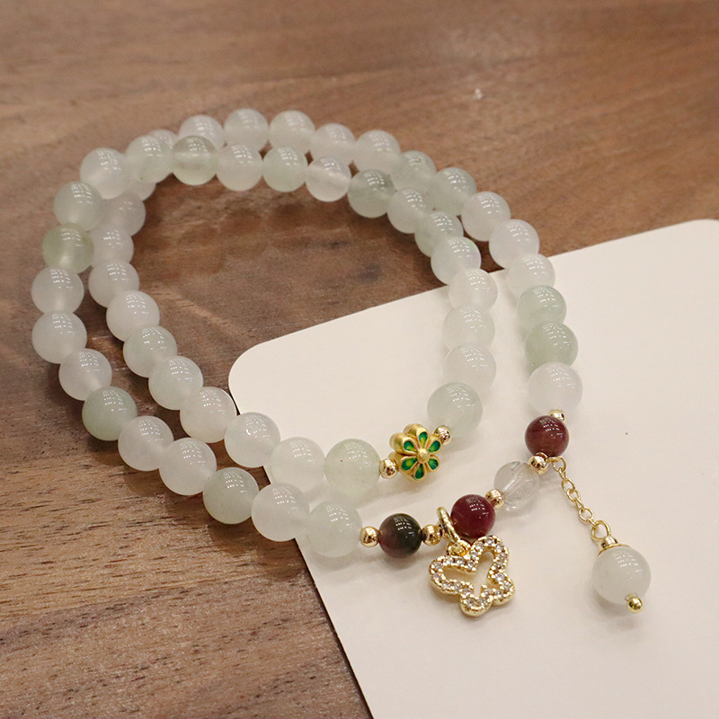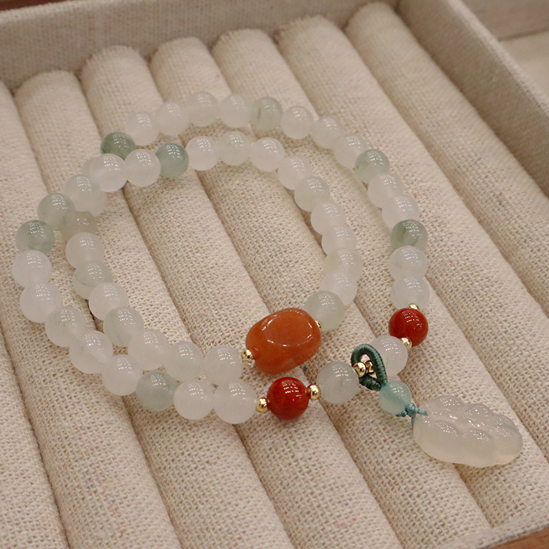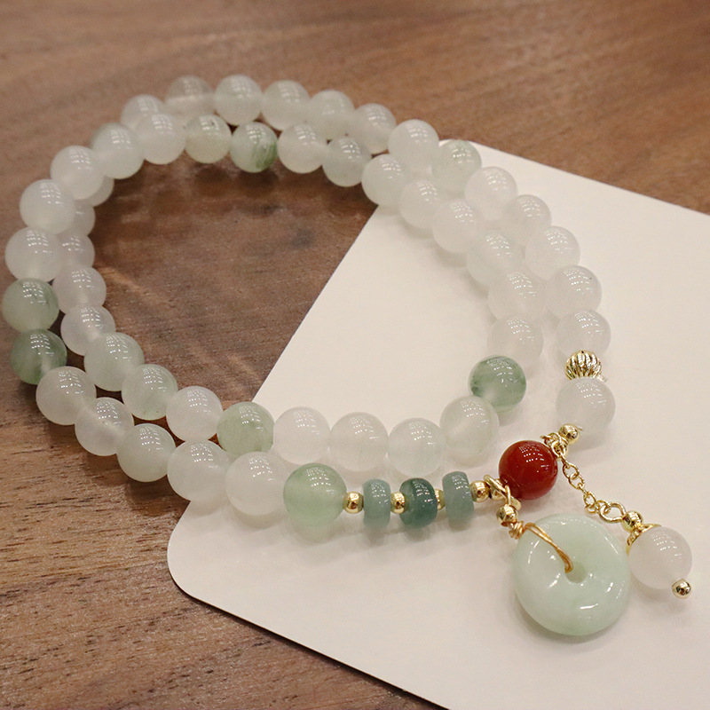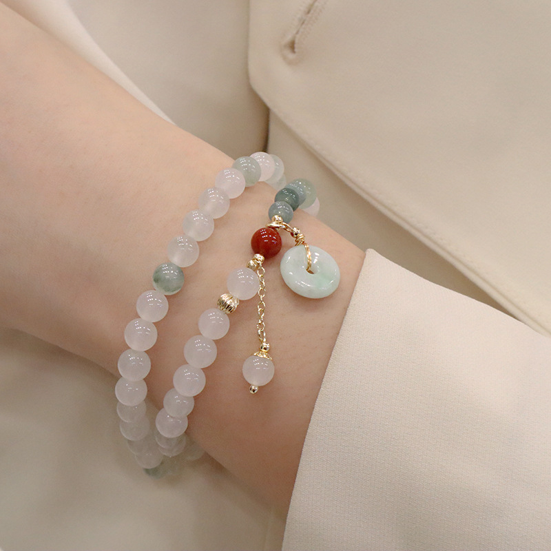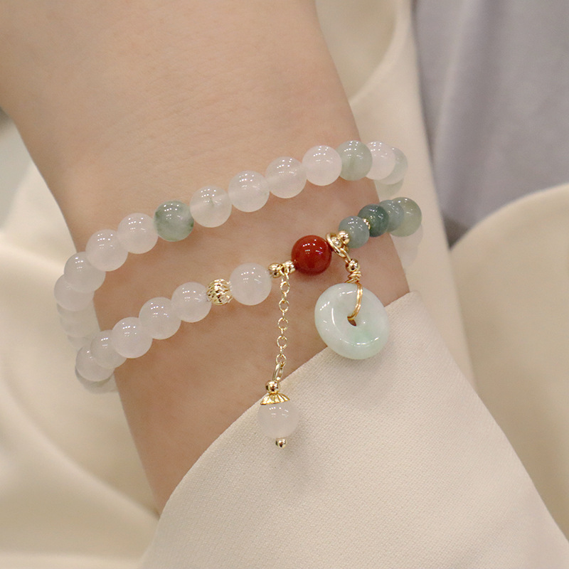 双圈天山翠手链女新中式平安扣吊坠手串简约小众清新感手饰批发女