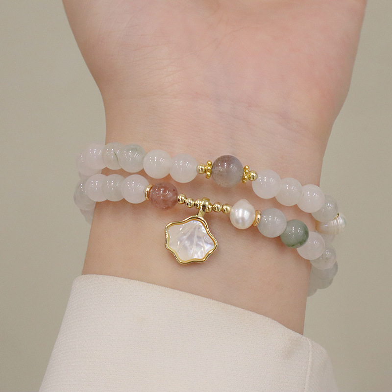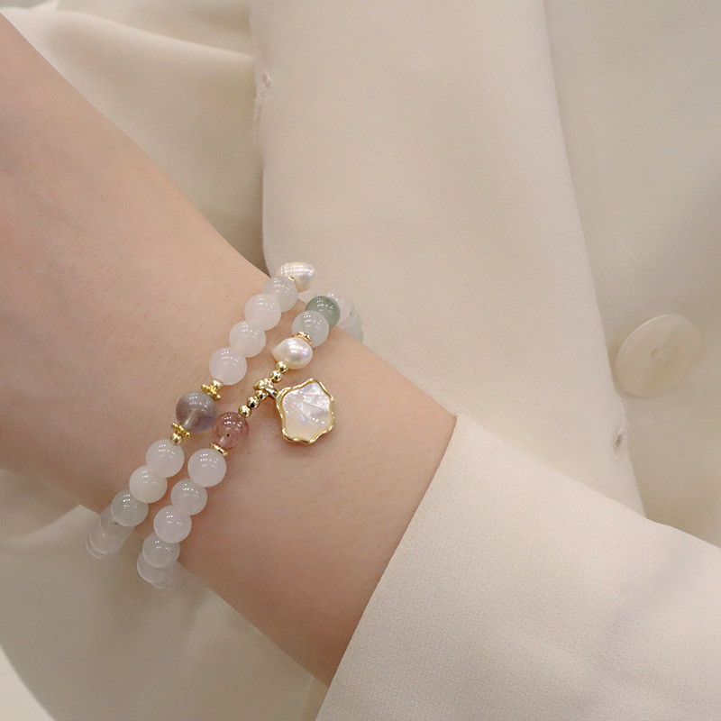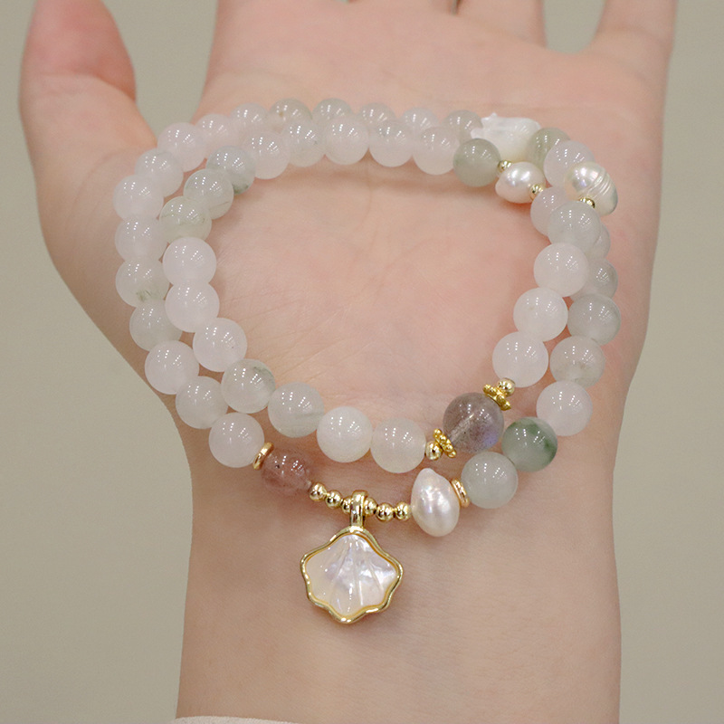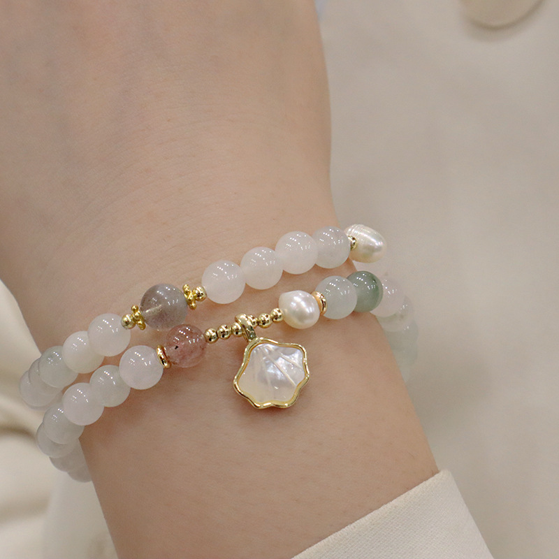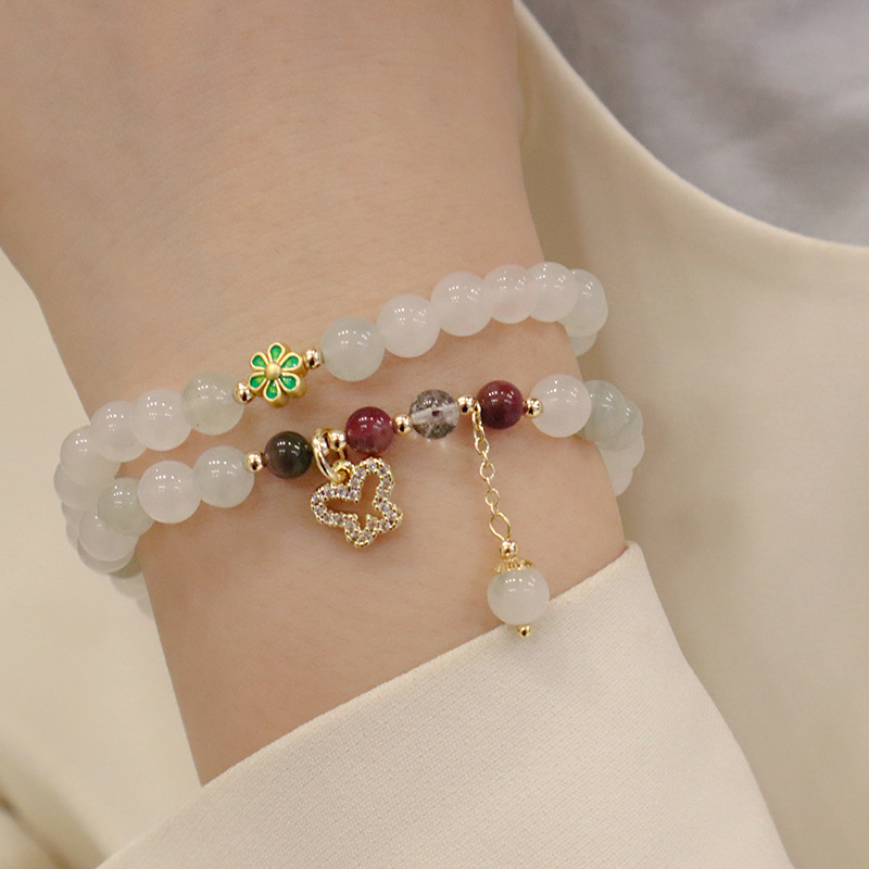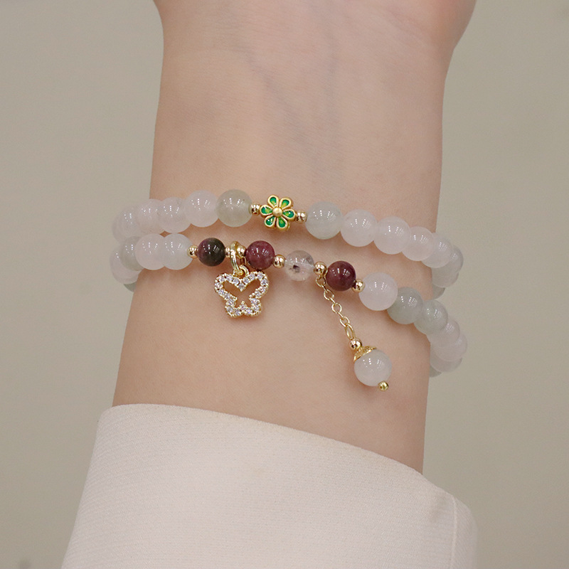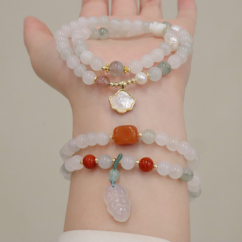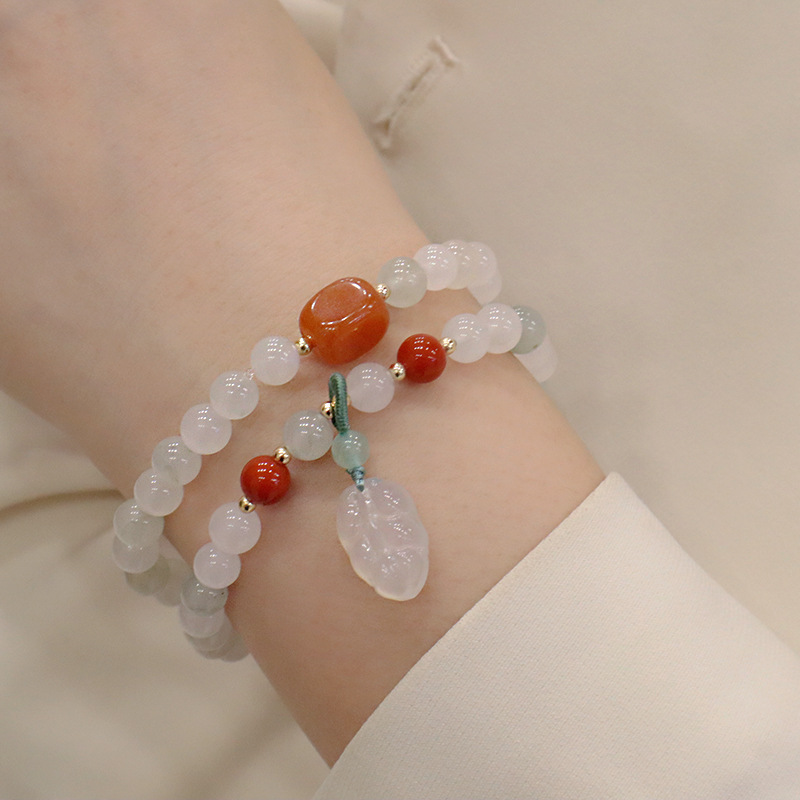 双圈天山翠手链女新中式平安扣吊坠手串简约小众清新感手饰批发女