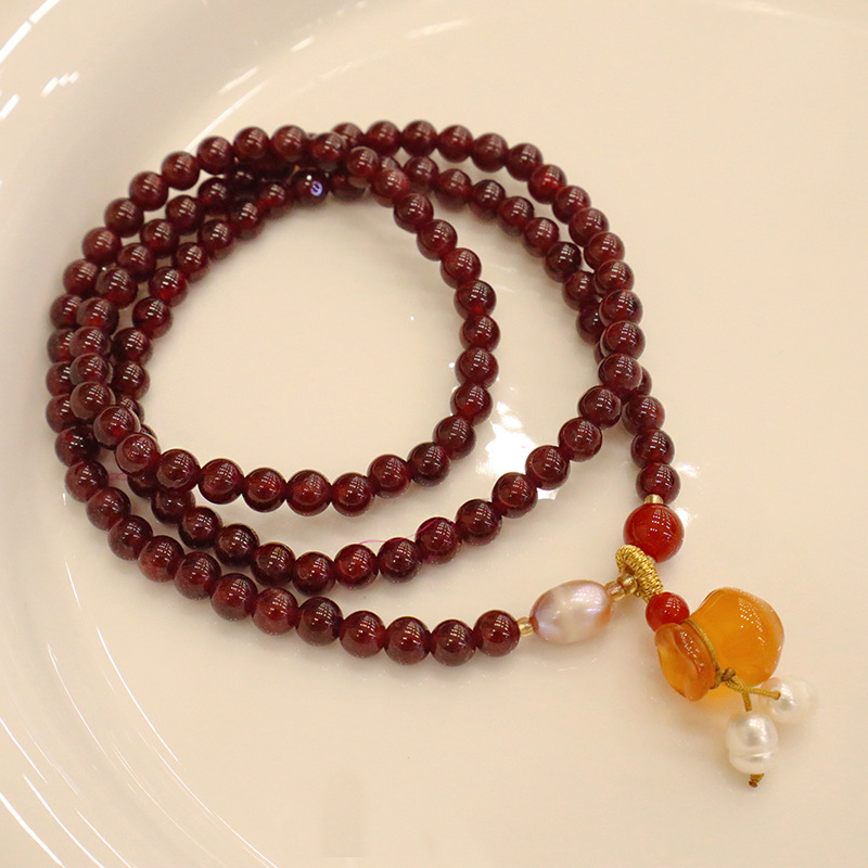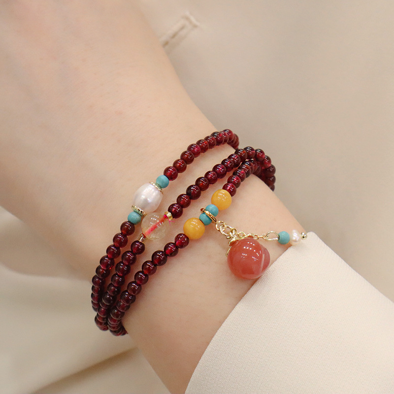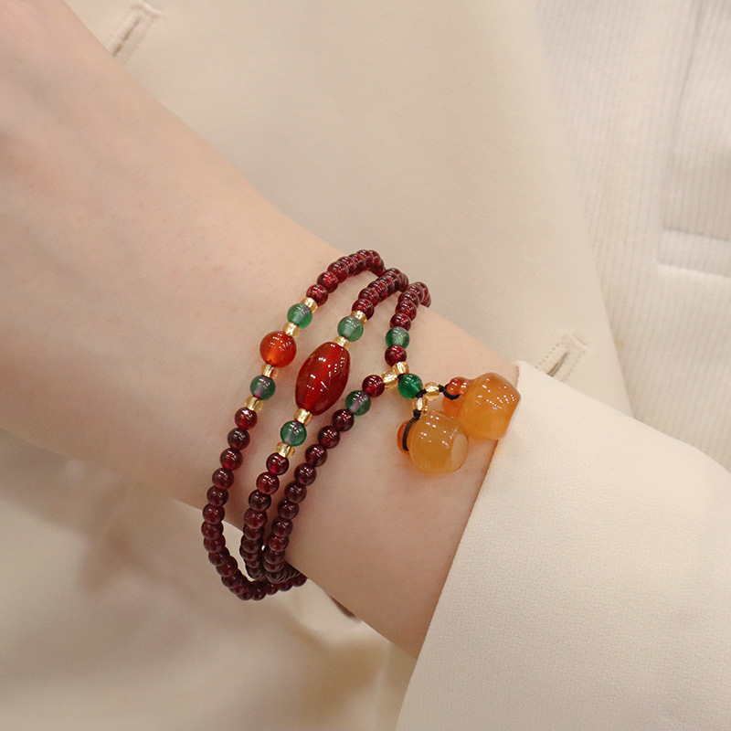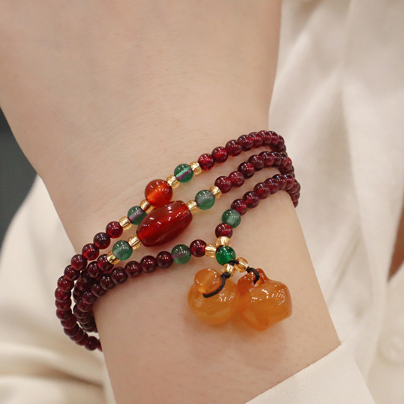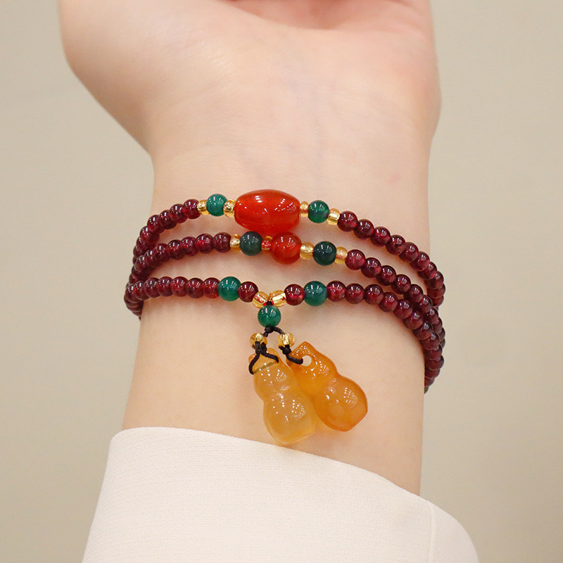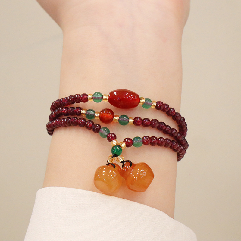新中式天然三圈石榴石手链女玉髓苹果葫芦吊坠手串手饰品直播爆款