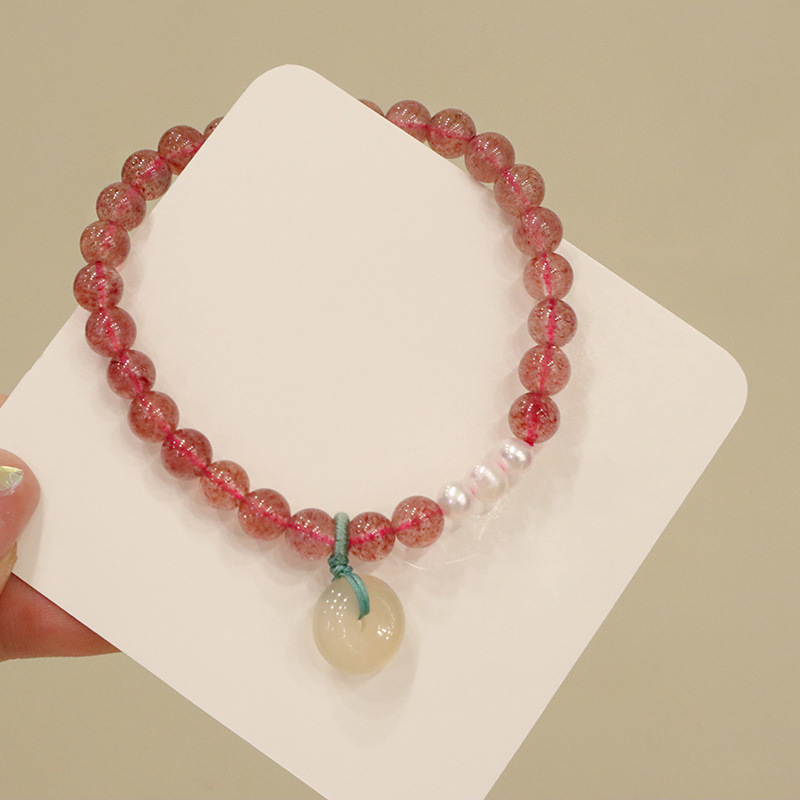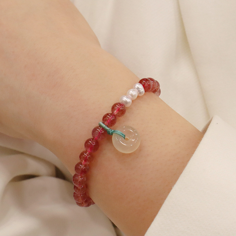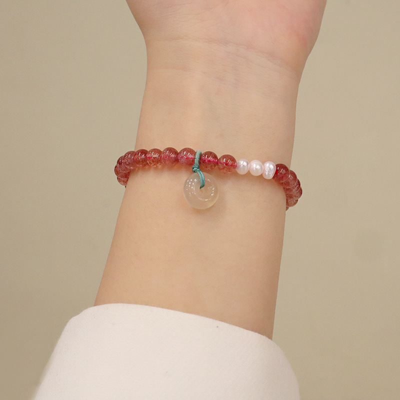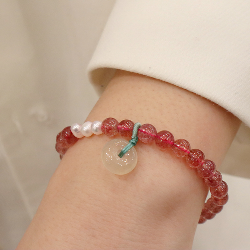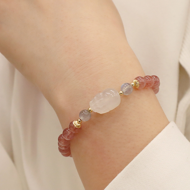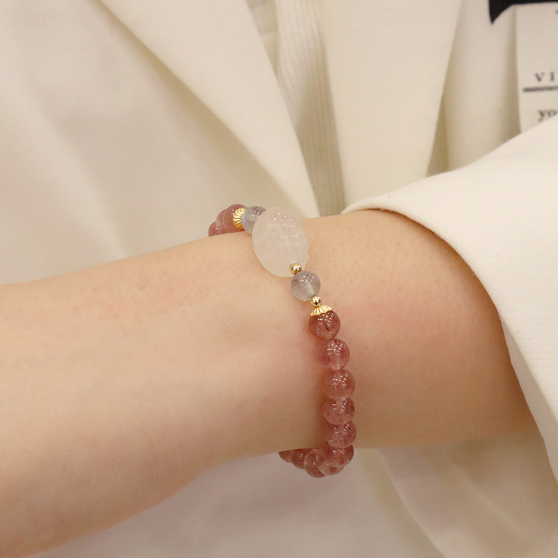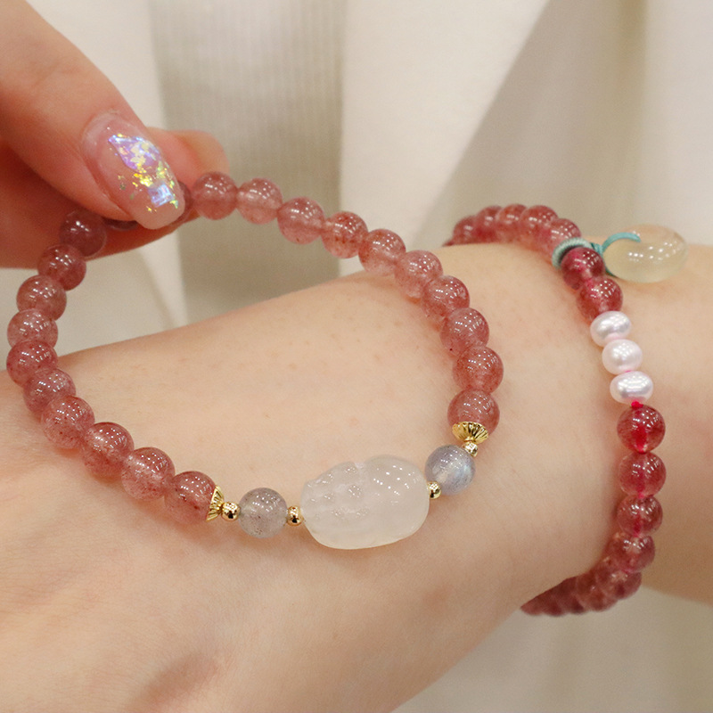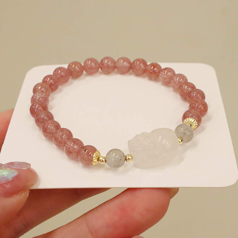 天然草莓晶貔貅手链平安扣女生灰月光手串原创设计水晶手串手饰品