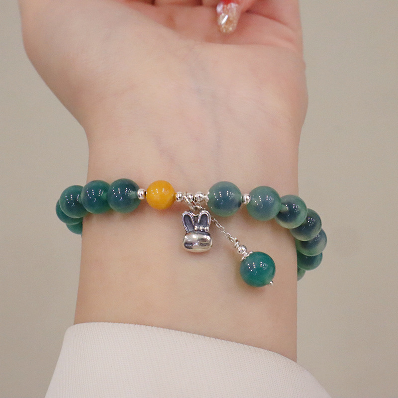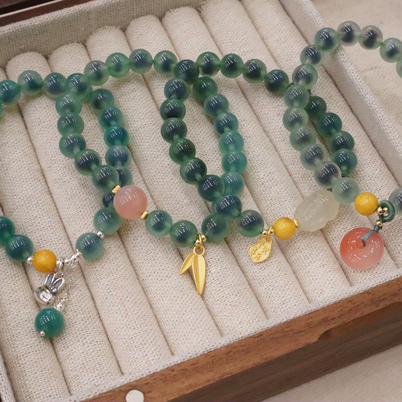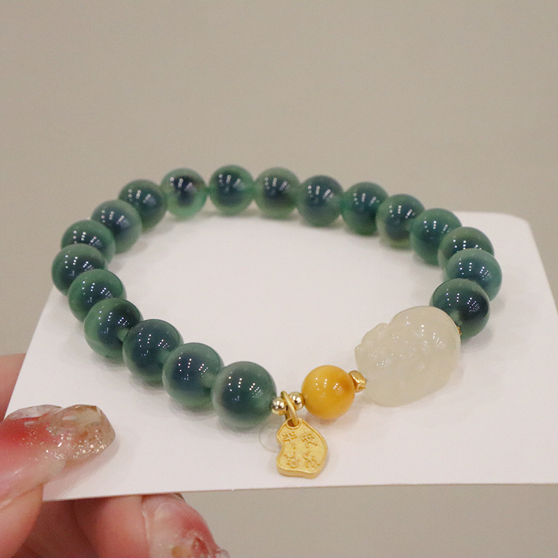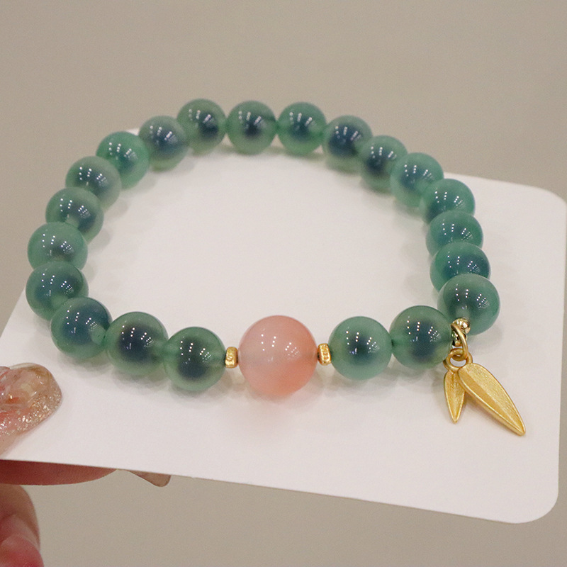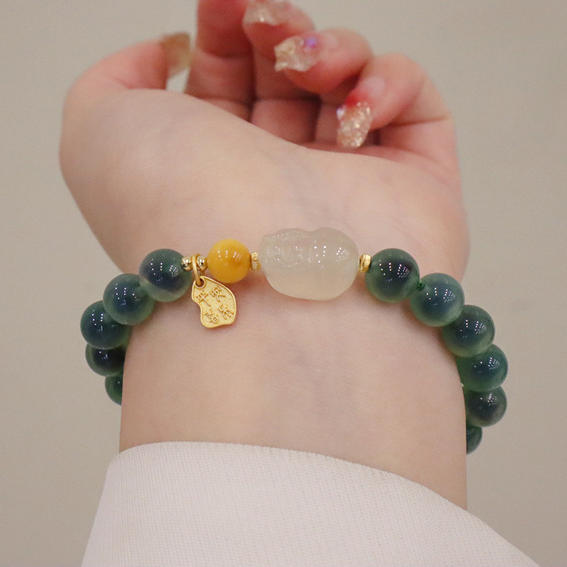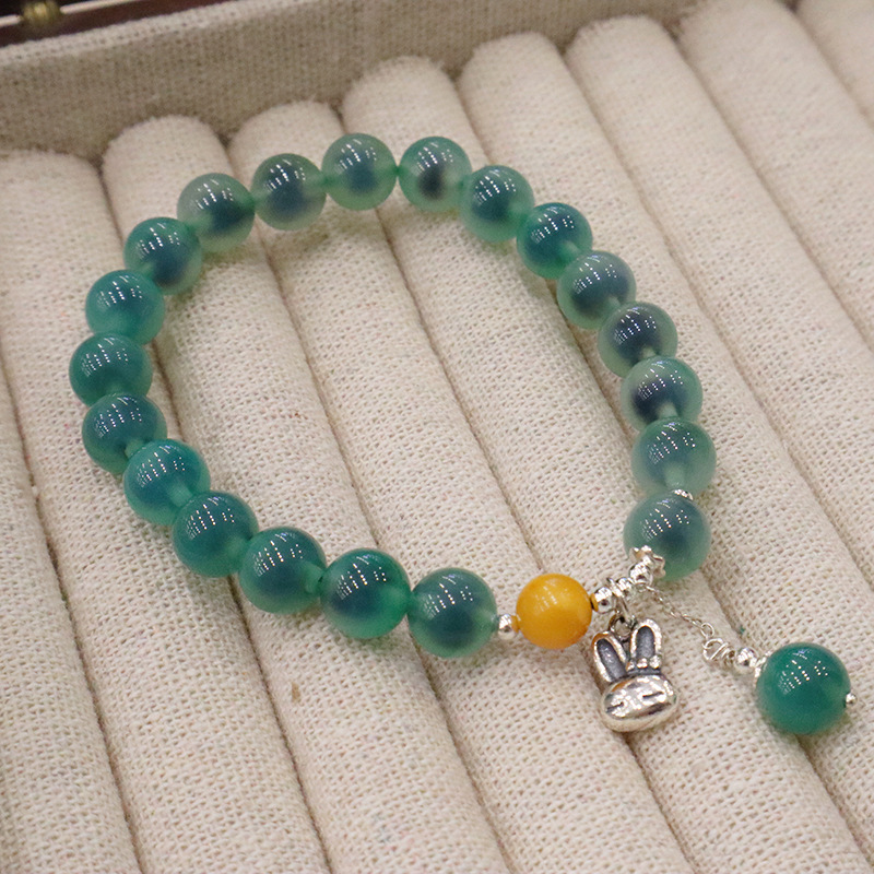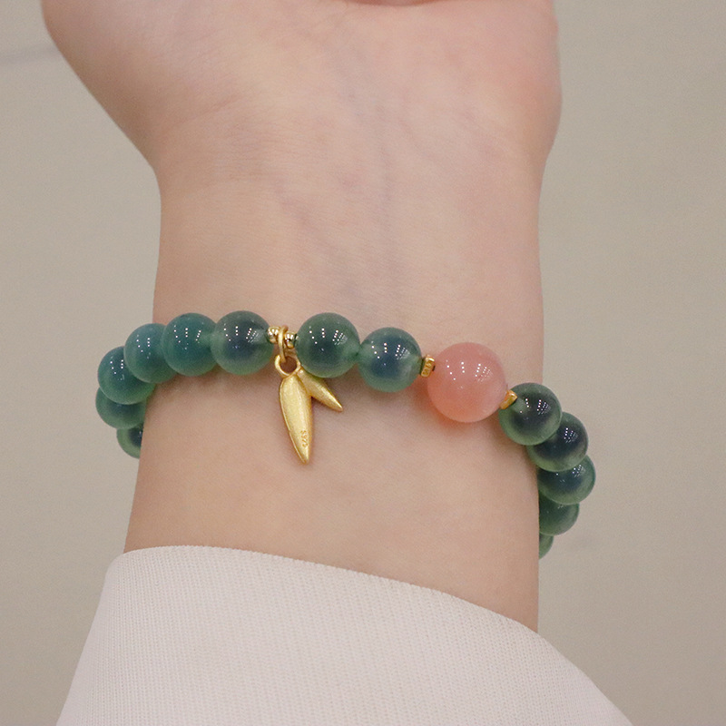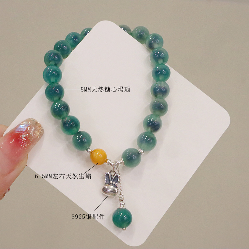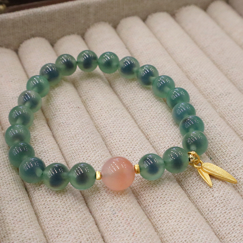 天然绿糖心玛瑙手链女纯银吊坠平安扣手串小清新中国风手饰品