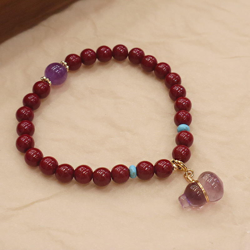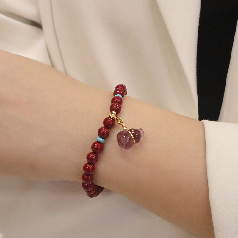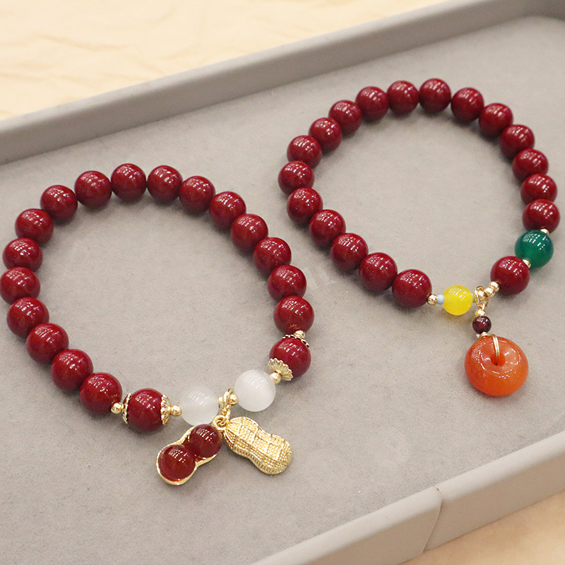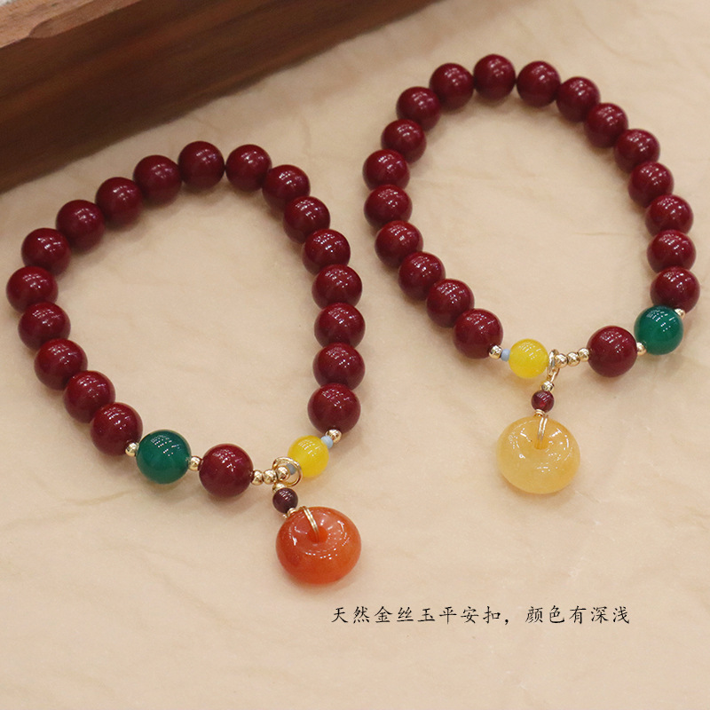 平安扣手链朱砂男女款本命年朱砂手串玉髓葫芦紫金砂手链批发
