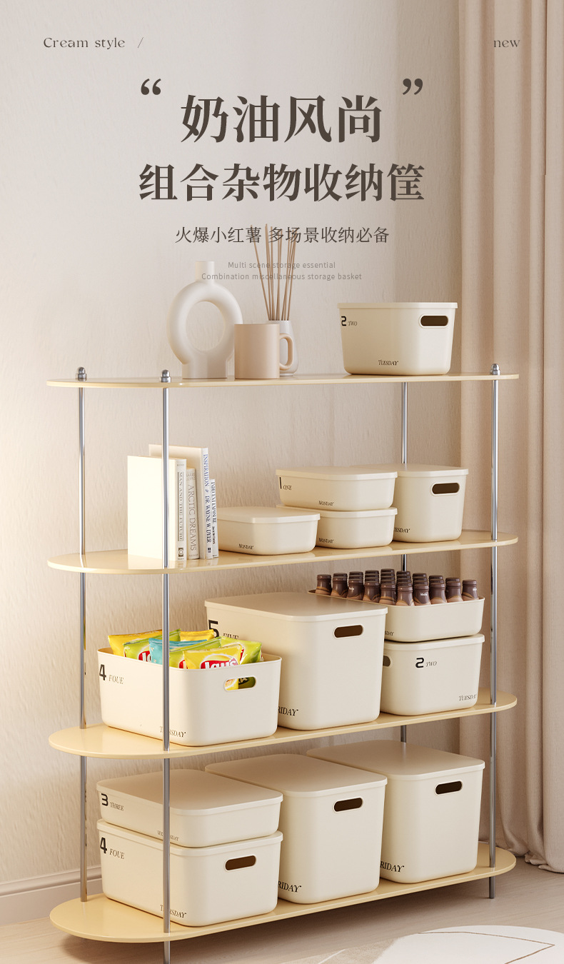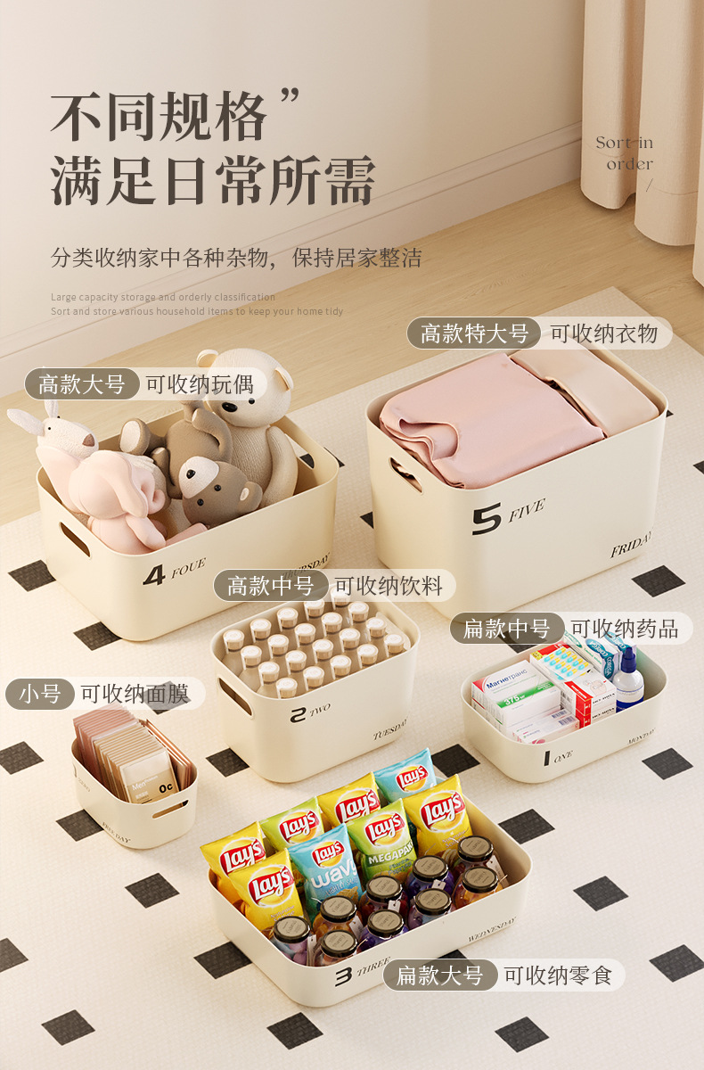 奶油风杂物玩具收纳盒家用化妆品零食整理收纳加厚塑料日式收纳盒