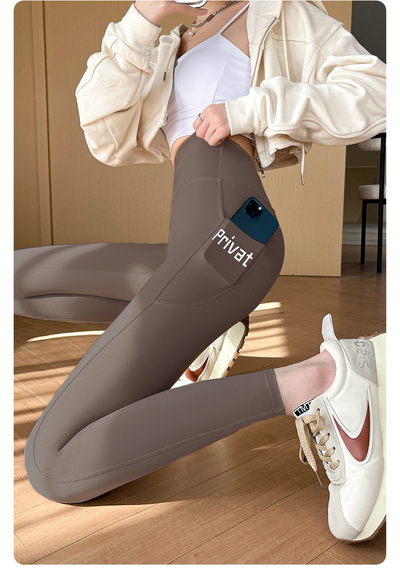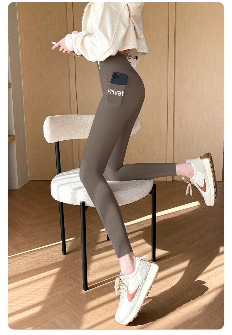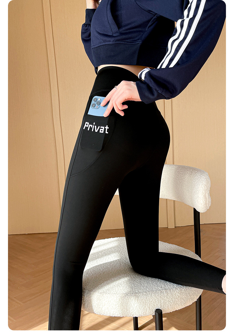 口袋鲨鱼皮打底裤女春秋外穿薄款收腹高腰紧身显瘦大码瑜伽芭比裤