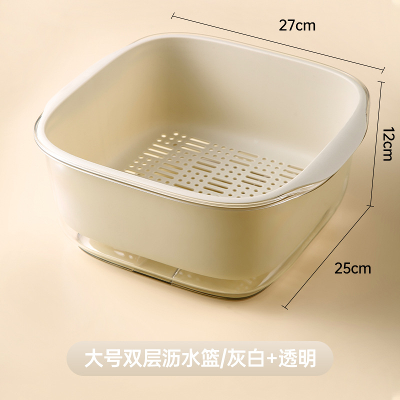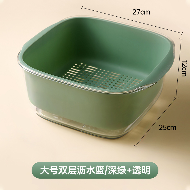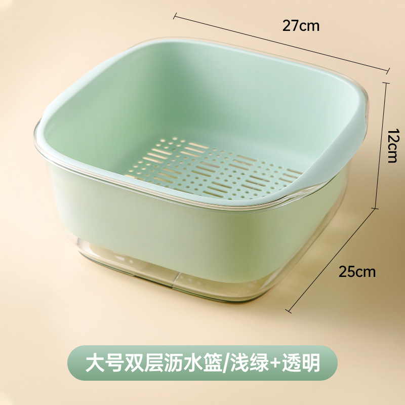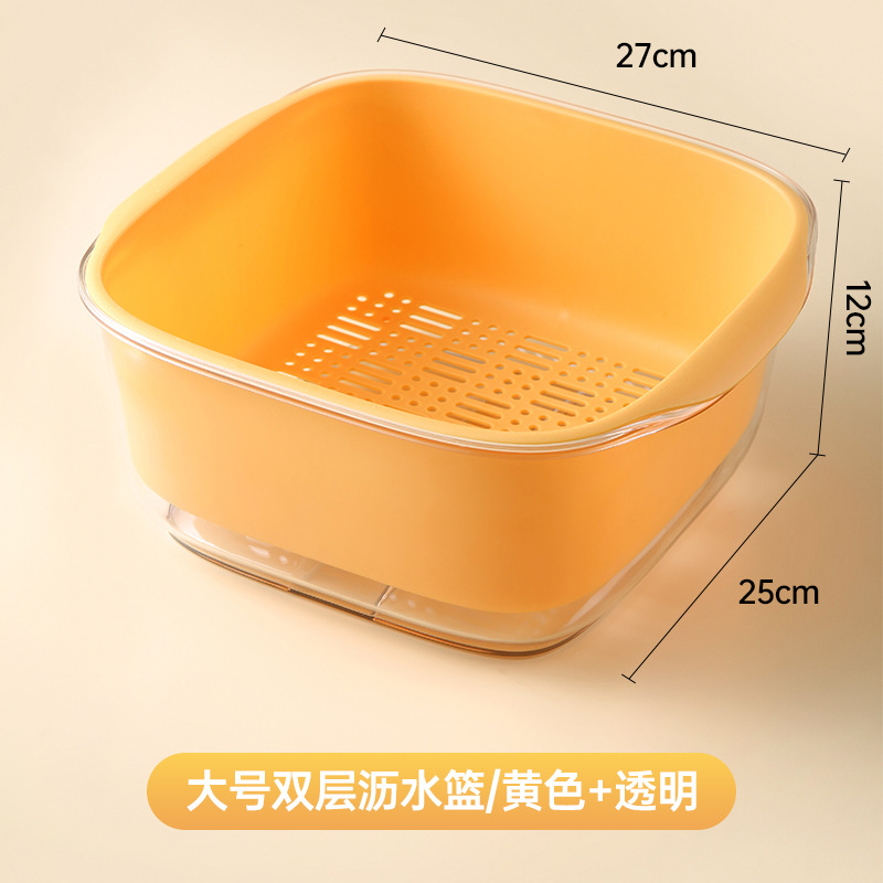 PET双层沥水篮创意撞色塑料洗菜篮水果盆家用厨房收纳果蔬沥水盆