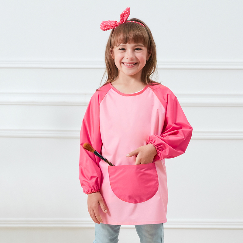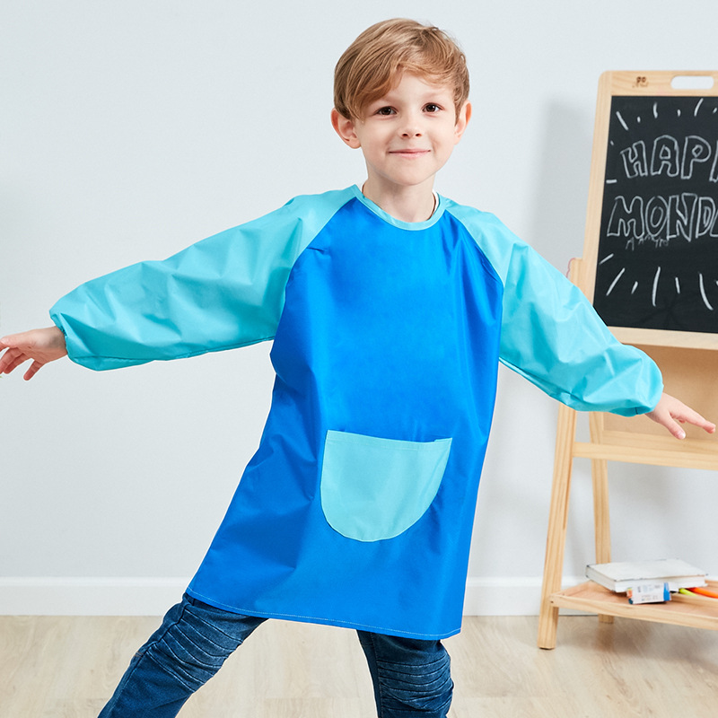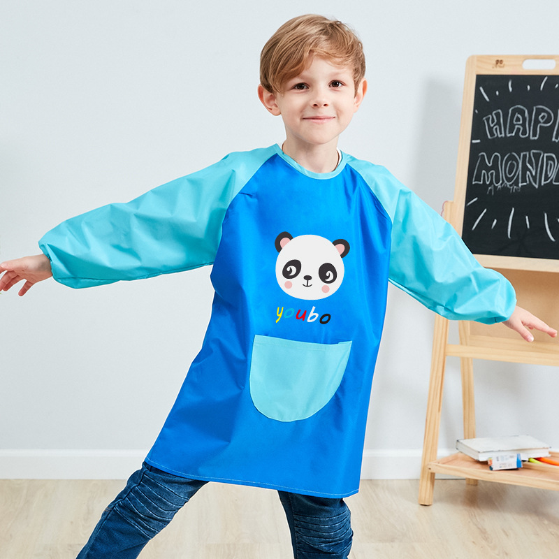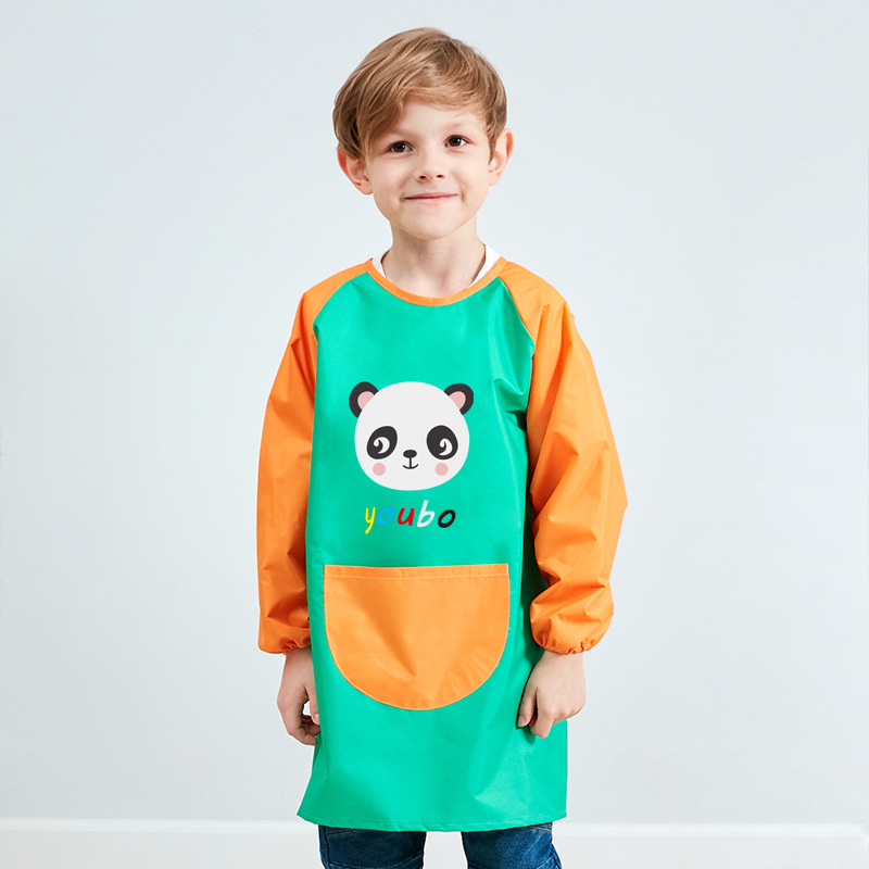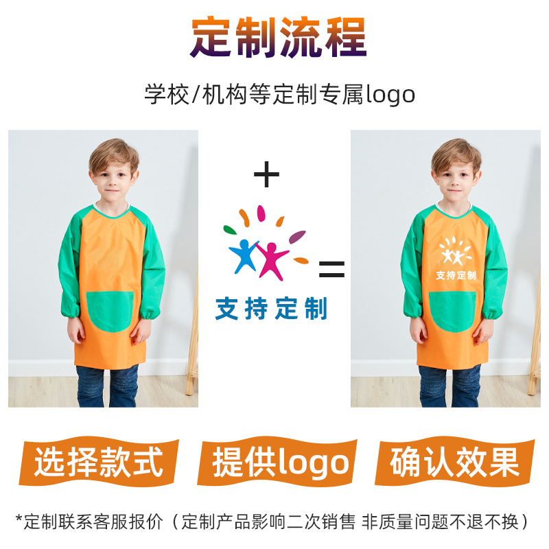 儿童罩衣长袖防水围裙画画衣logo长袖美术绘画吃饭衣卡通印字大童