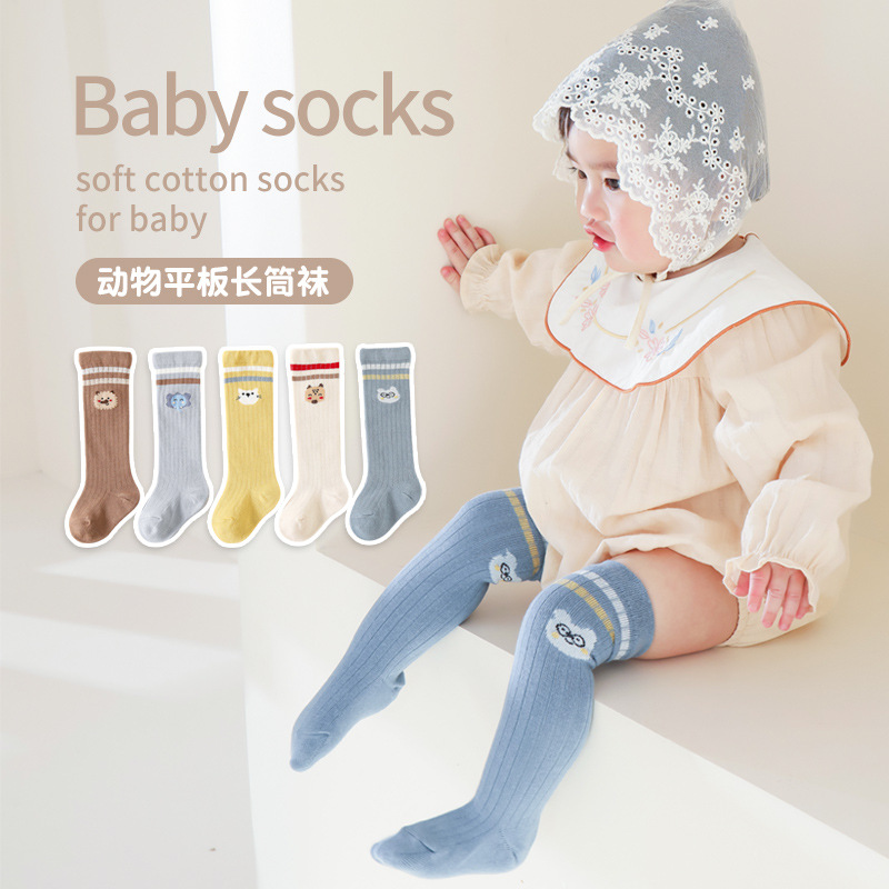 2023韩国全棉儿童长筒袜学院风学生袜条纹卡通动物婴儿长筒袜批发