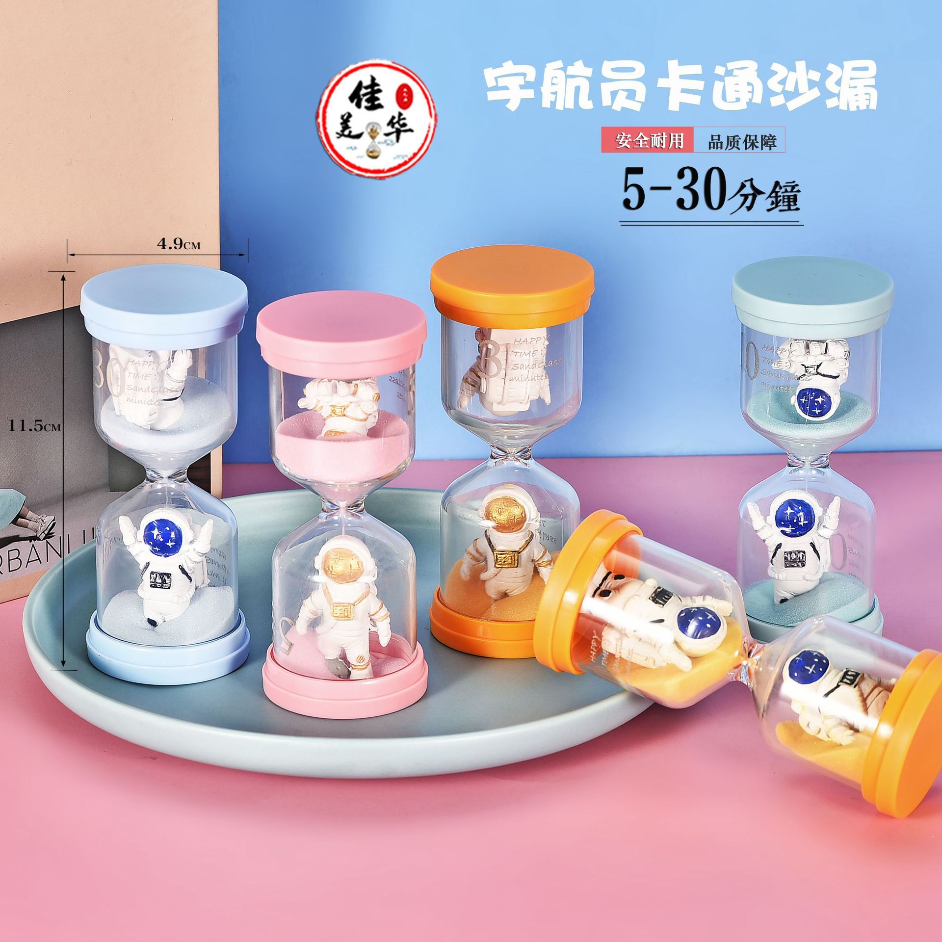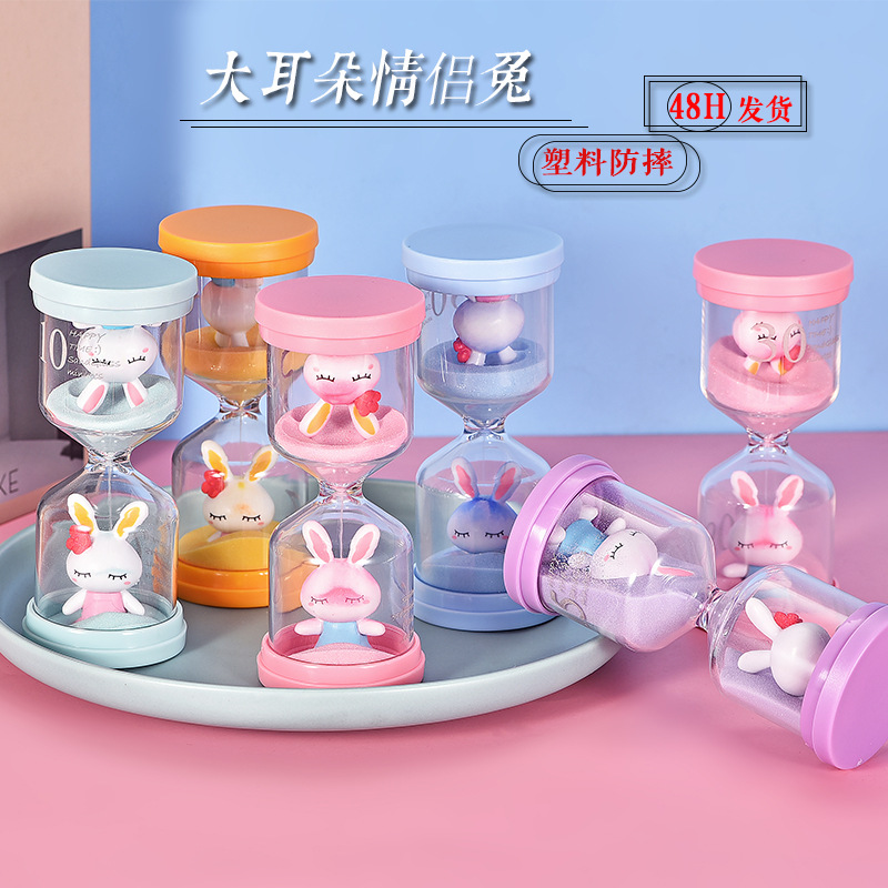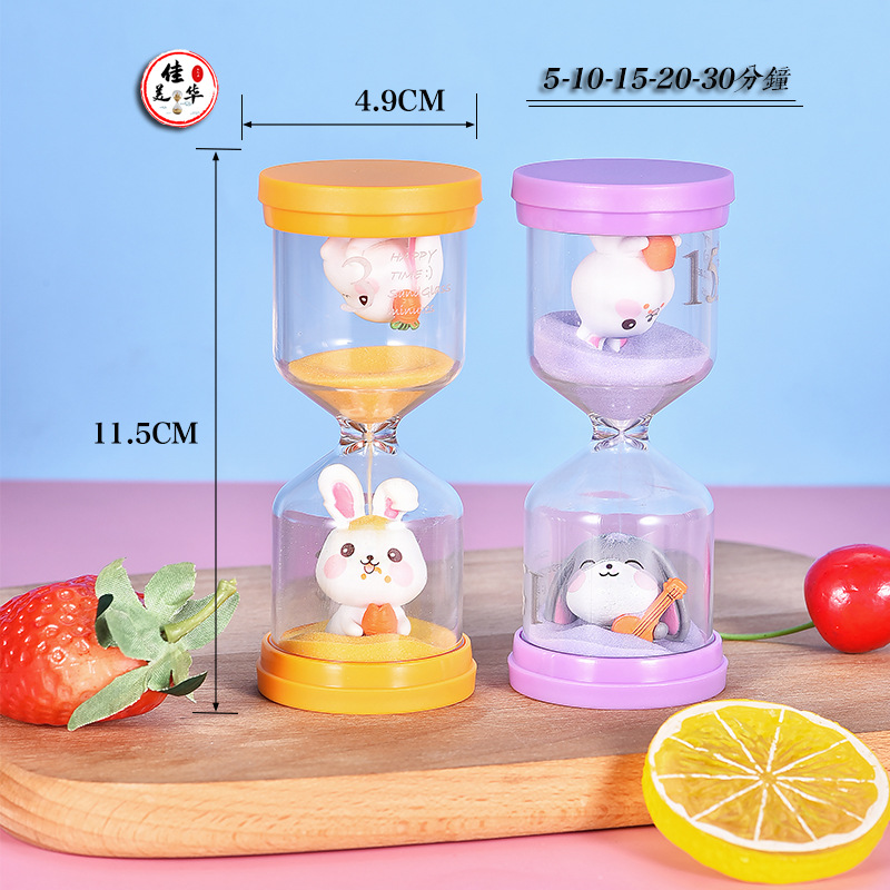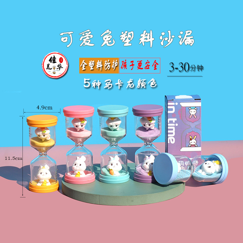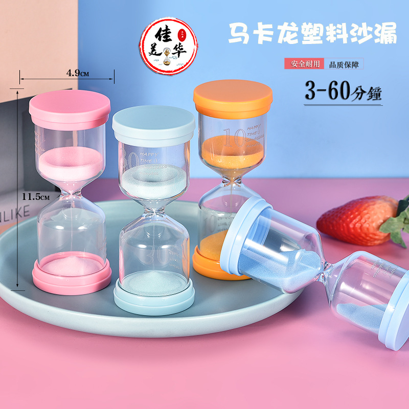 创意儿童塑料马卡龙沙漏计时30分钟内置公仔幼儿园学习刷牙摆件