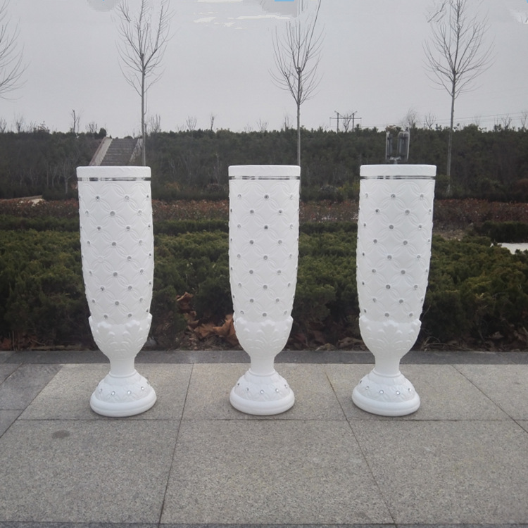 新款婚庆罗马柱塑料花瓶路引仿真绢花一体贴钻欧式婚庆金杯批发