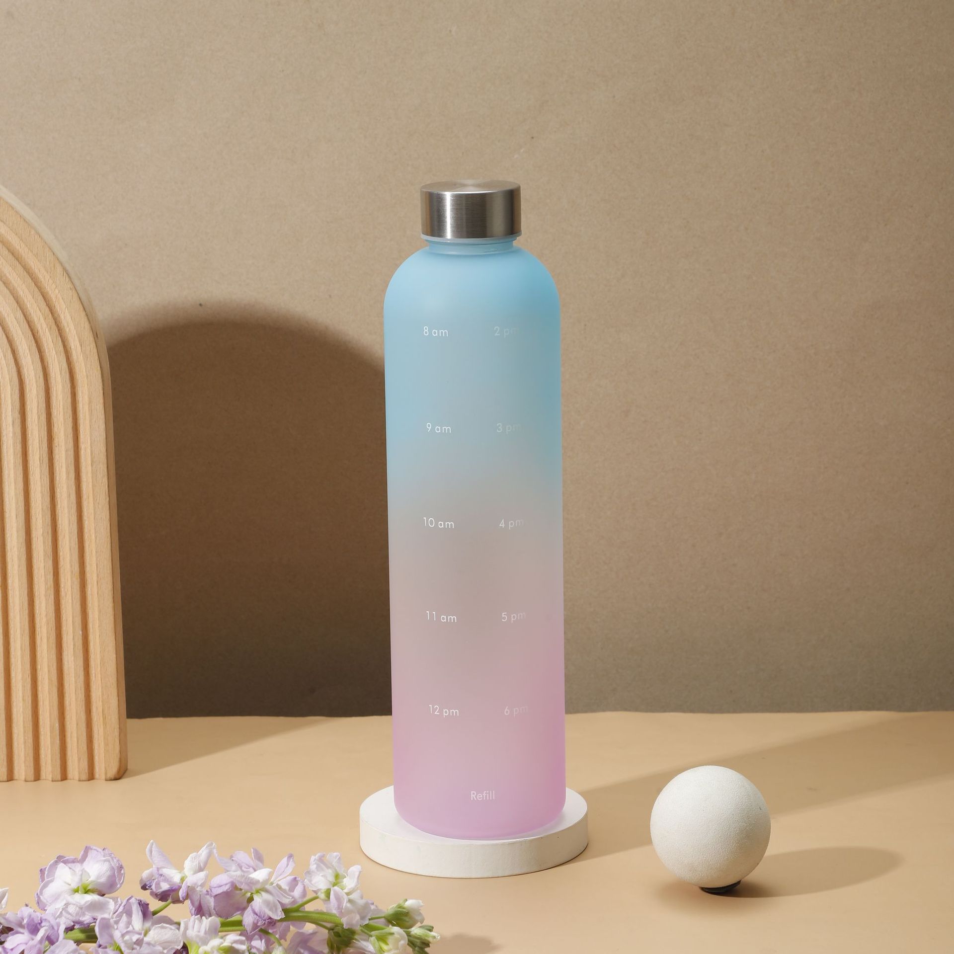 亚马逊渐变色太空杯户外大容量磨砂运动随手水杯塑料杯不锈钢盖
