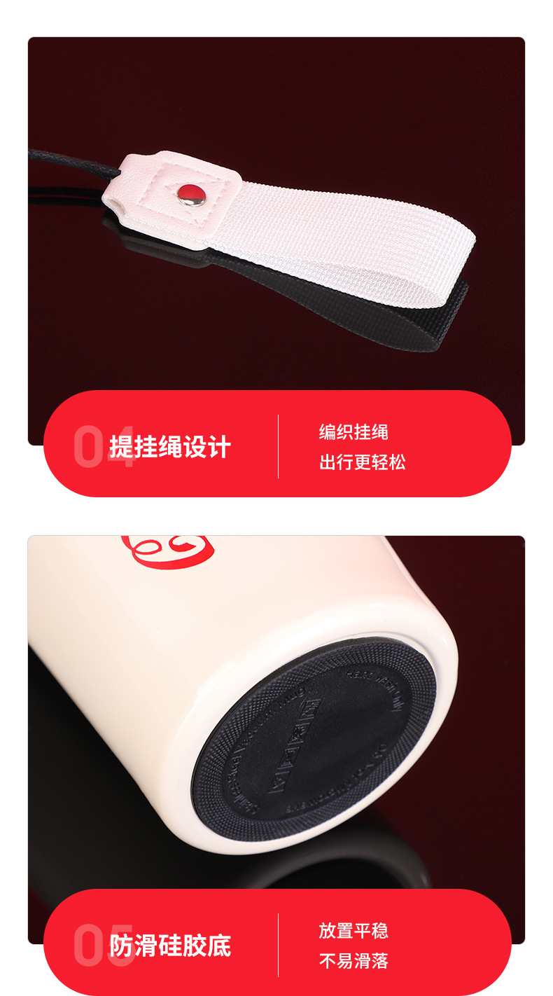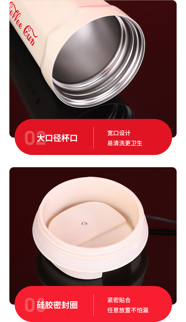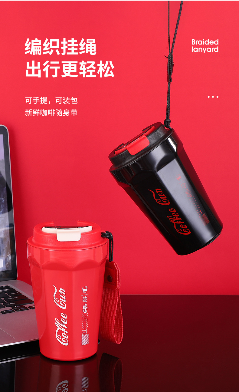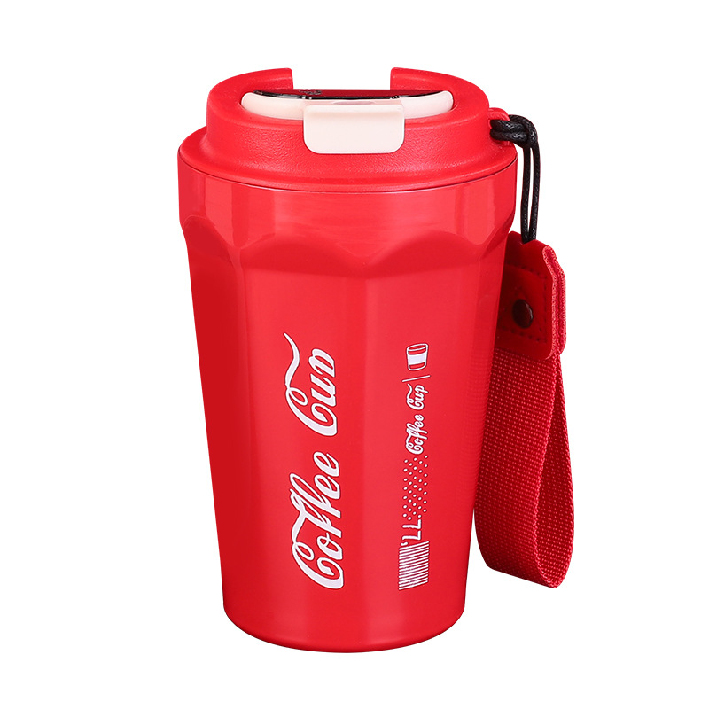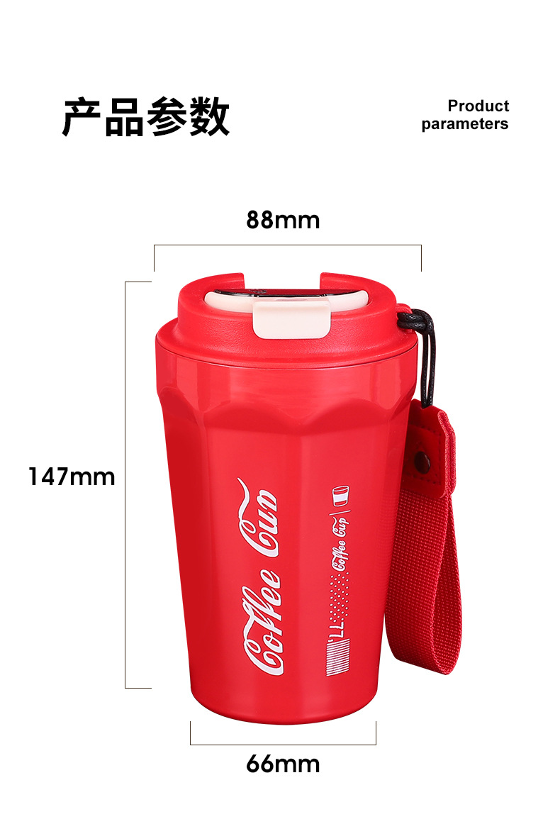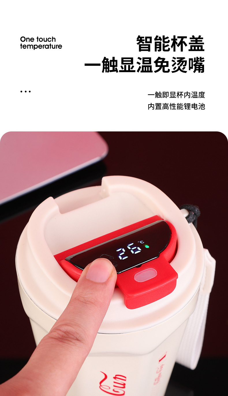 出口热销款智能显温可乐杯八角杯304不锈钢保温杯咖啡杯随行提绳