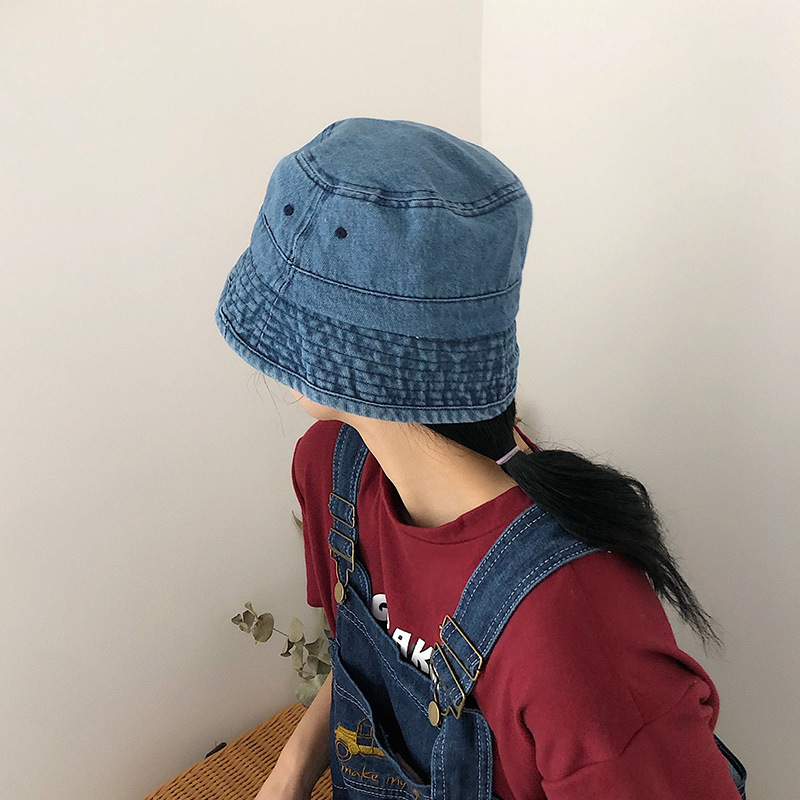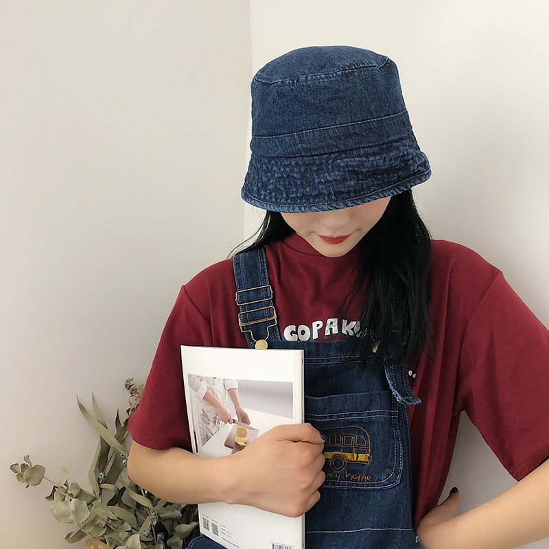 ins帽子女网红钟型渔夫帽日系简约休闲牛仔水桶帽学生韩版盆帽男