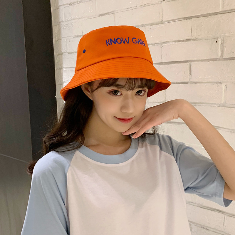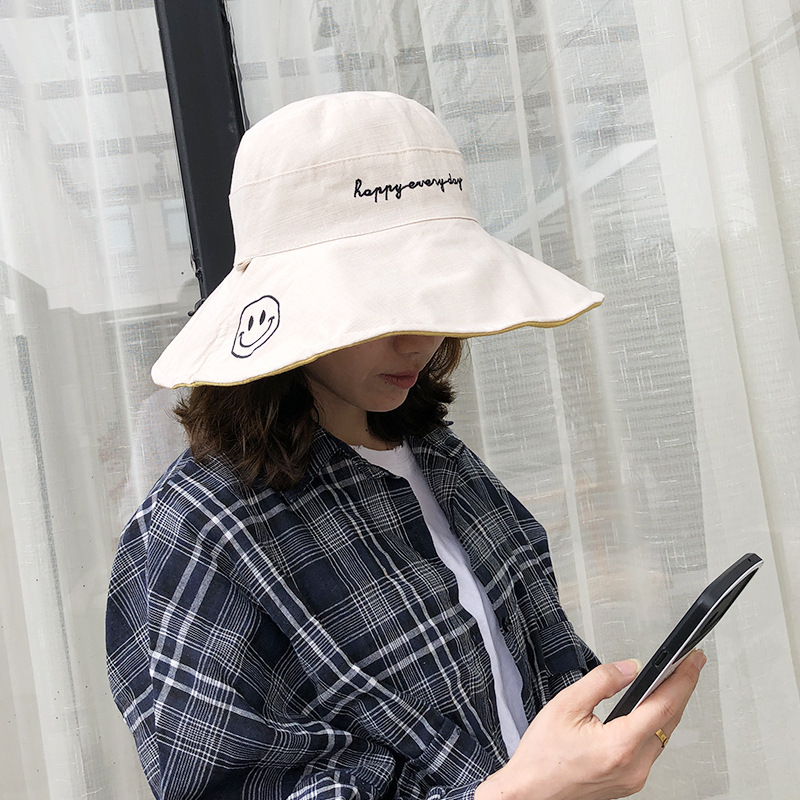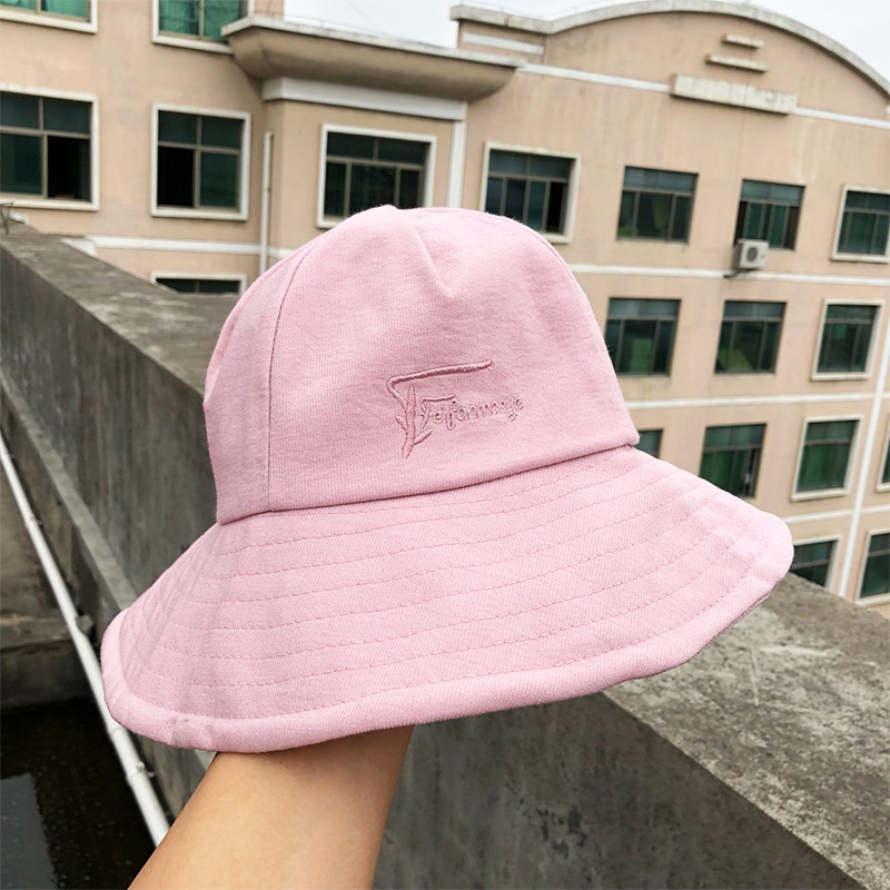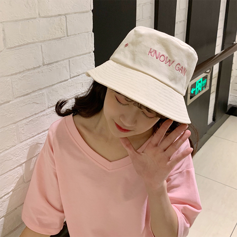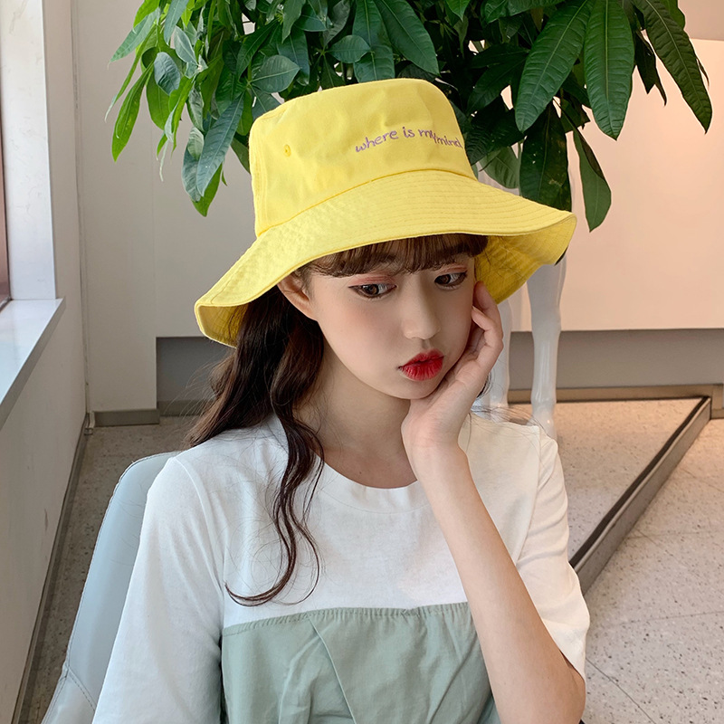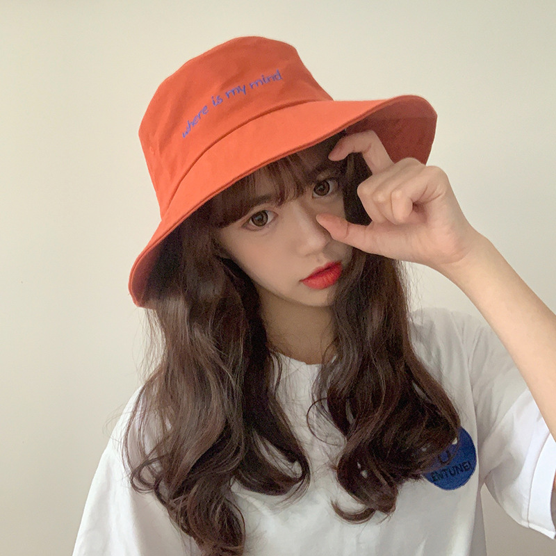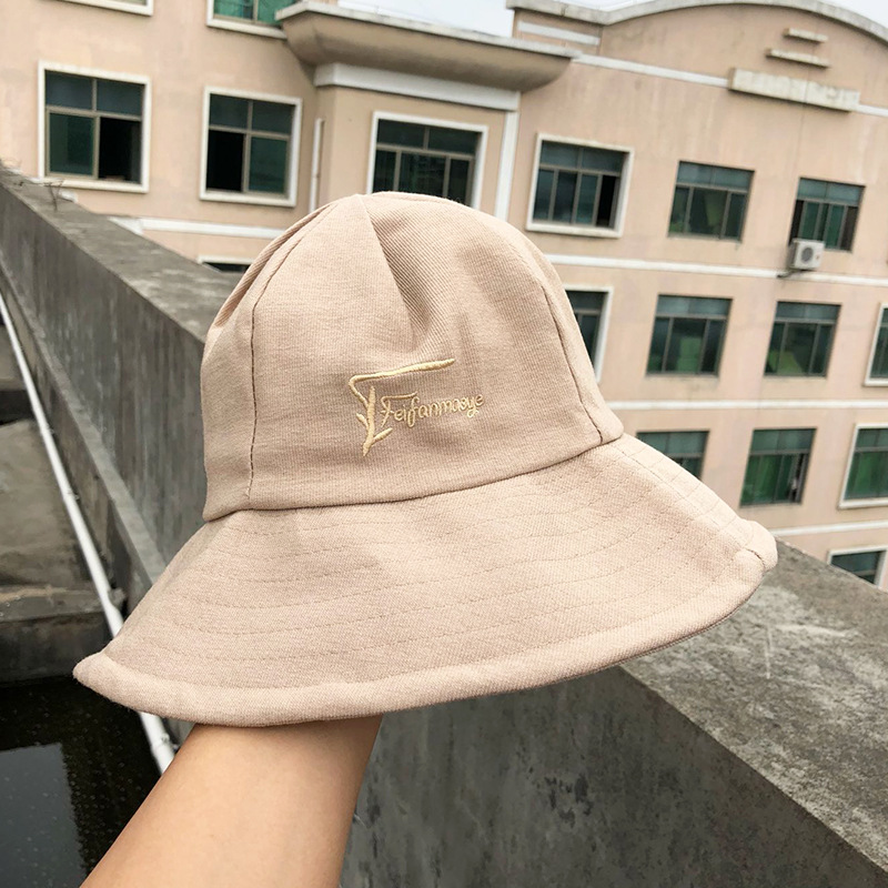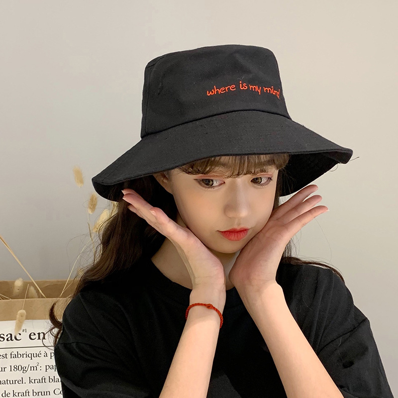 帽子女士夏季日系文艺百搭时尚渔夫帽字母刺绣户外出游防晒遮阳帽