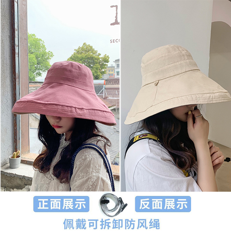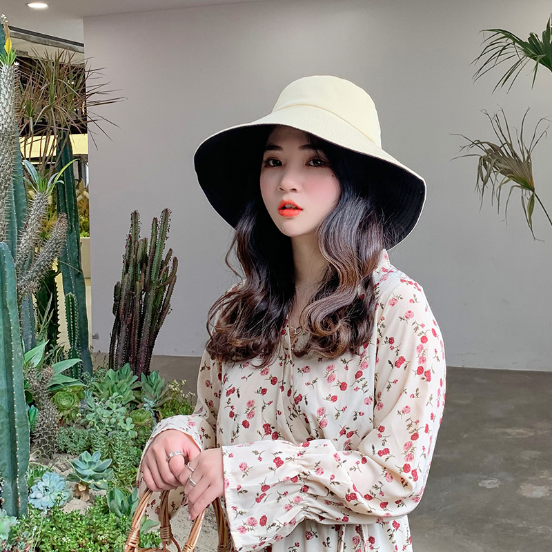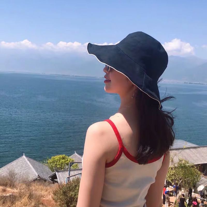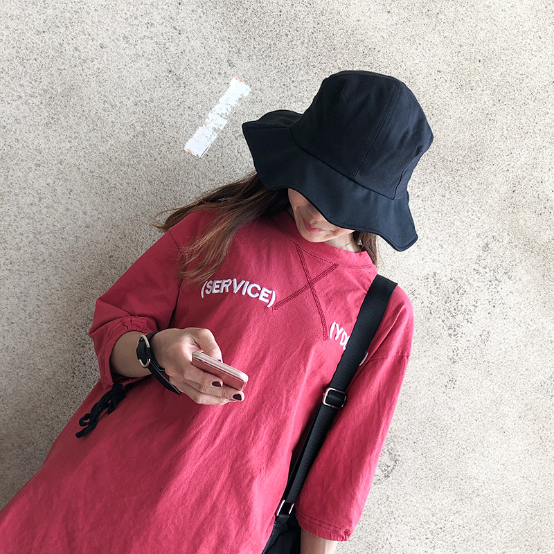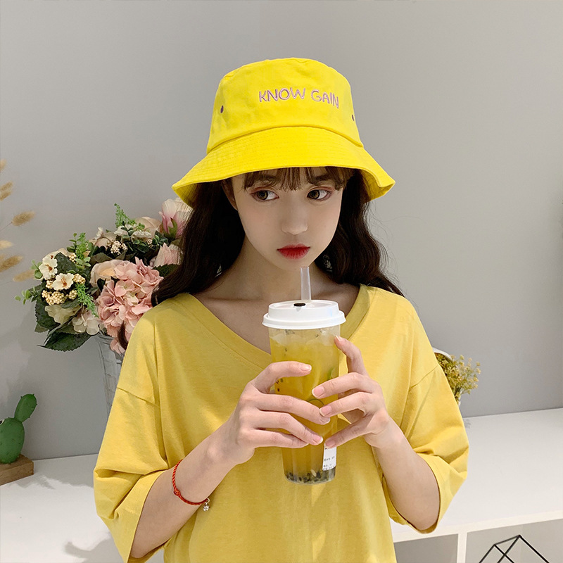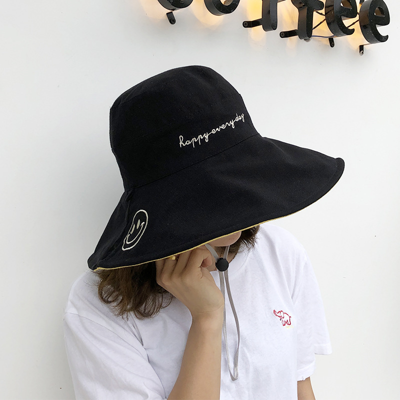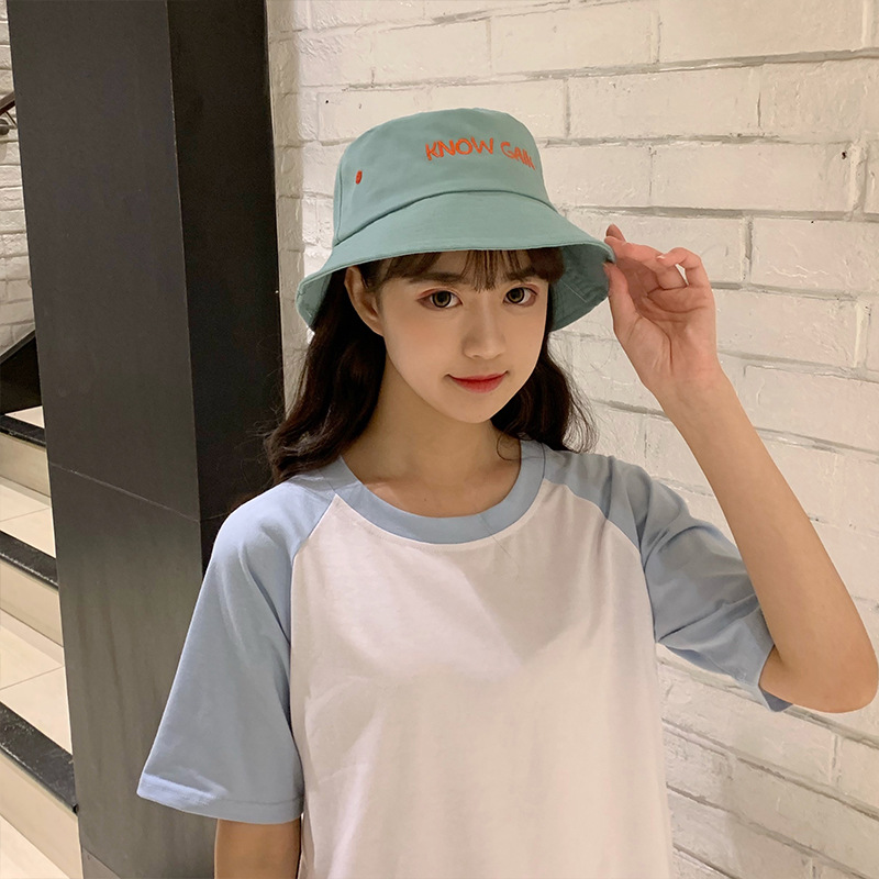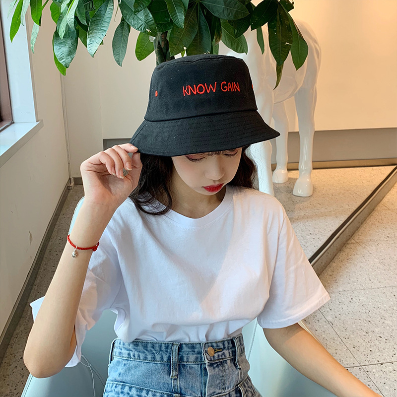 帽子女士夏季日系文艺百搭时尚渔夫帽字母刺绣户外出游防晒遮阳帽