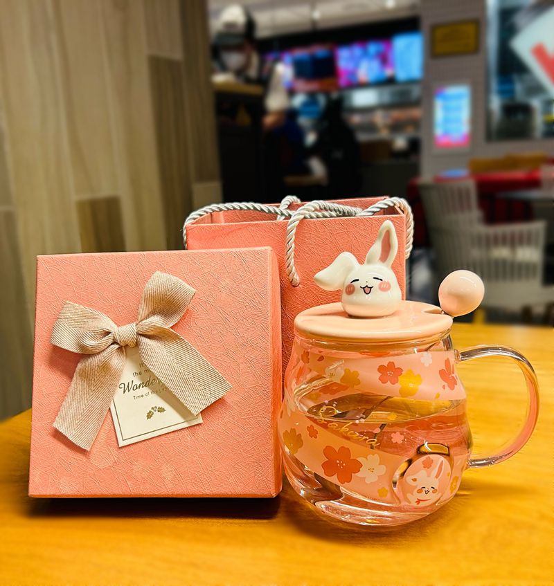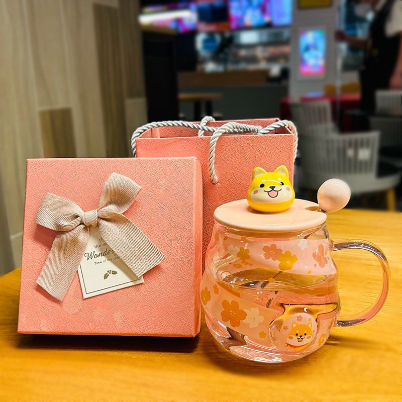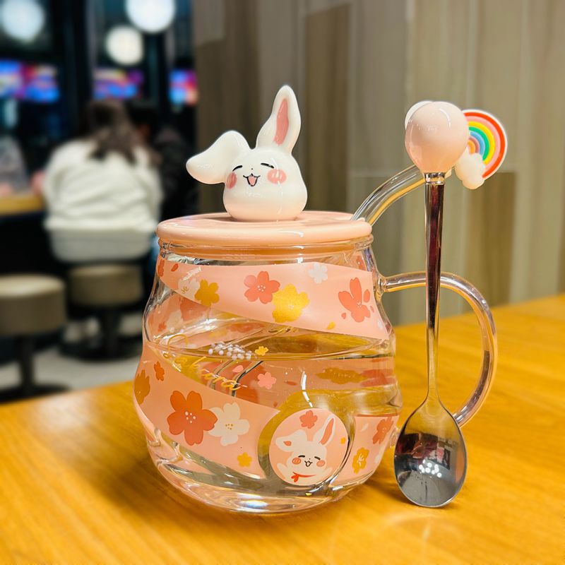 高颜值耐高温玻璃杯带盖把手大容量女冬可爱杯子家用办公室喝水杯