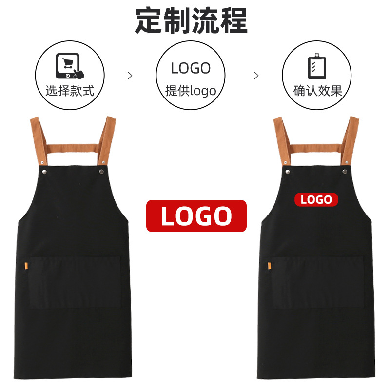 咖啡店美甲广告围裙logo女帆布日系厨房园艺工作家居家用工作服男