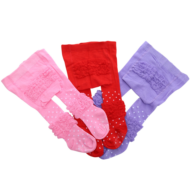 女童公主可爱防滑儿童连裤袜 花边纯色圆点纯棉外贸宝宝打底裤