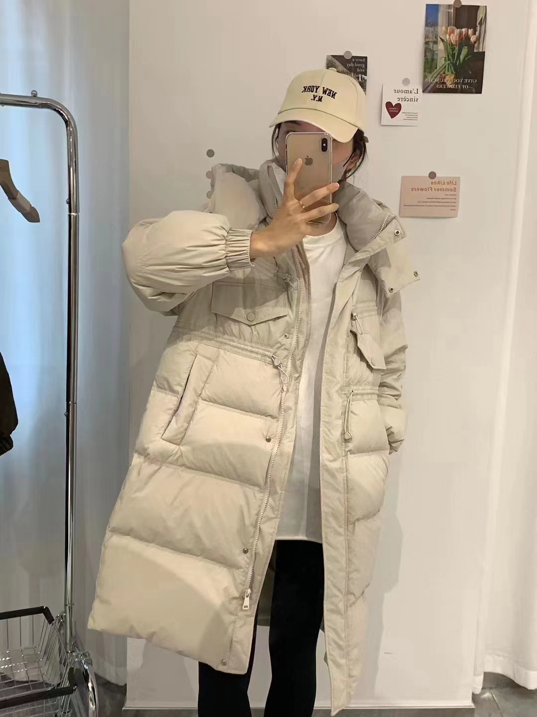白鸭绒高端羽绒服女中长款2023冬季新款韩版过膝收腰加厚外套潮