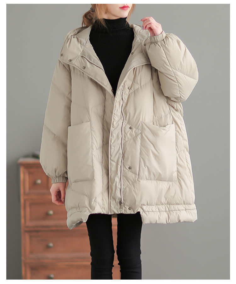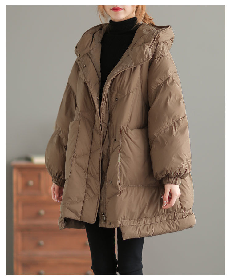 纯色连帽羽绒服女2023冬季新款韩版大码宽松加厚面包服白鸭绒外套