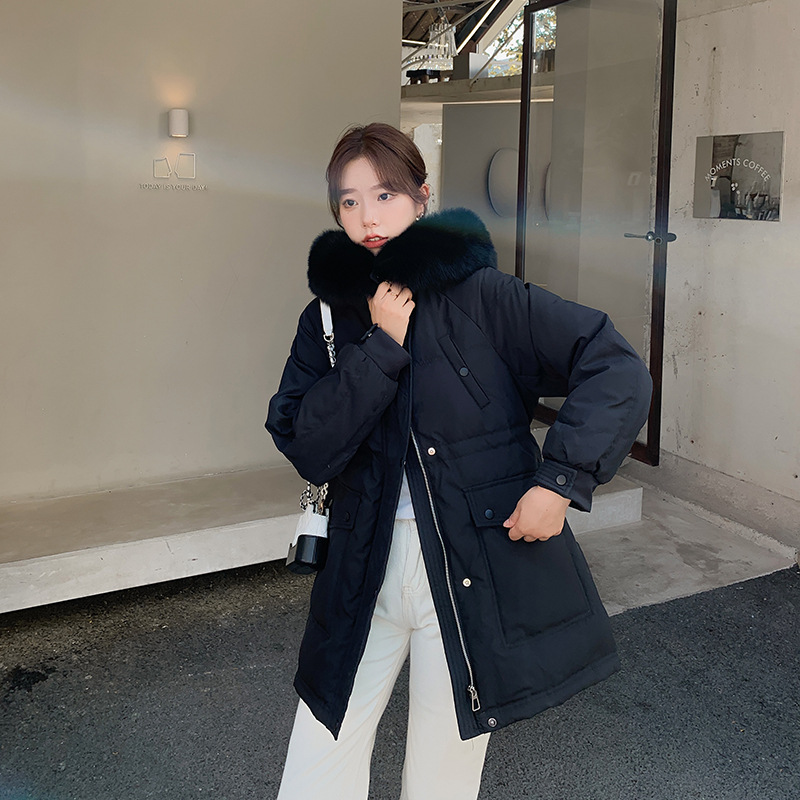 中长款羽绒服女2023冬季新款甜美收腰显瘦狐狸毛领保暖白鸭绒外套