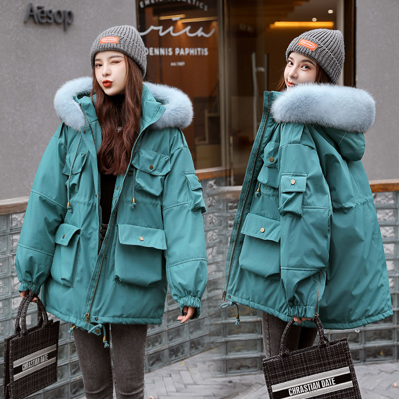 冬装新款羽绒服女中长款白鸭绒抽绳狐狸大毛领连帽保暖工装外套潮