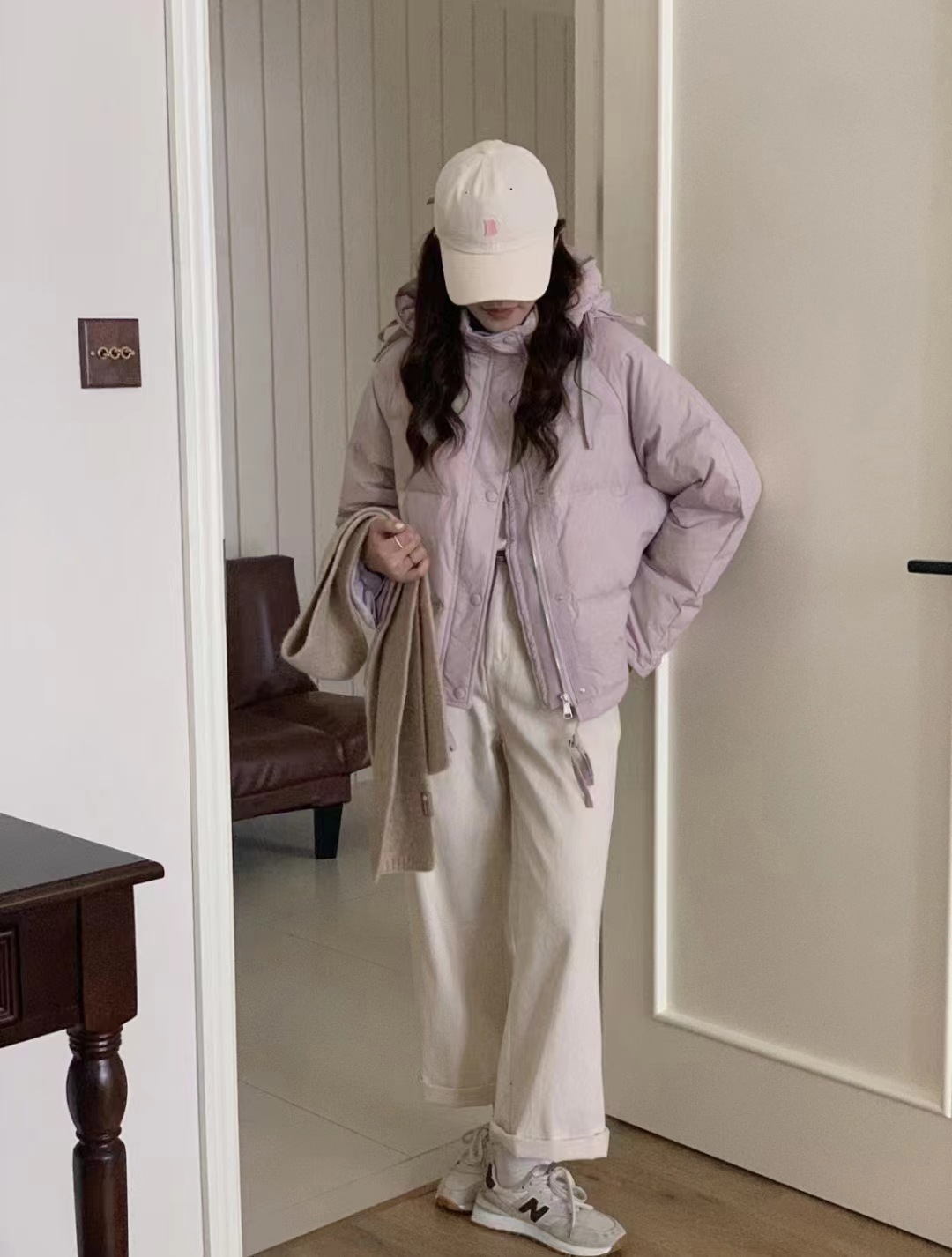 短款下摆系带设计羽绒服女2023冬季新款韩版甜美宽松白鸭绒外套潮