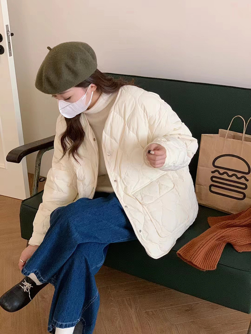 法式小香风轻便保暖羽绒服女2023冬季新款高端菱格短款白鸭绒外套