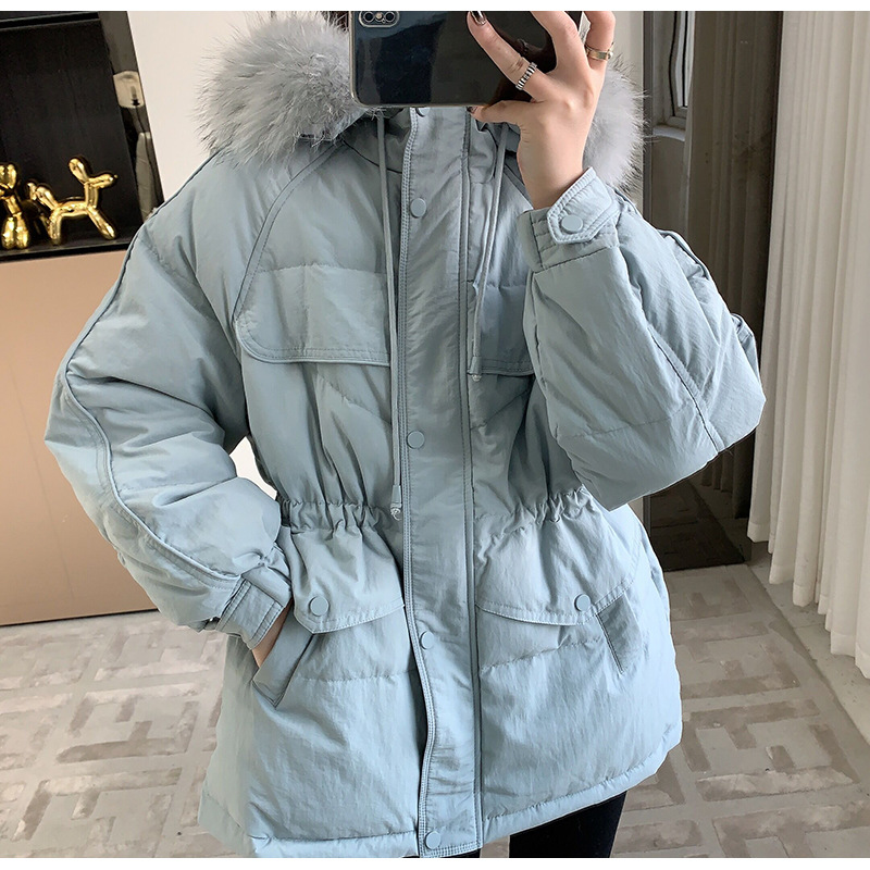 2023冬新款韩国东大门超大毛领羽绒服女中长款加厚工装白鸭绒外套