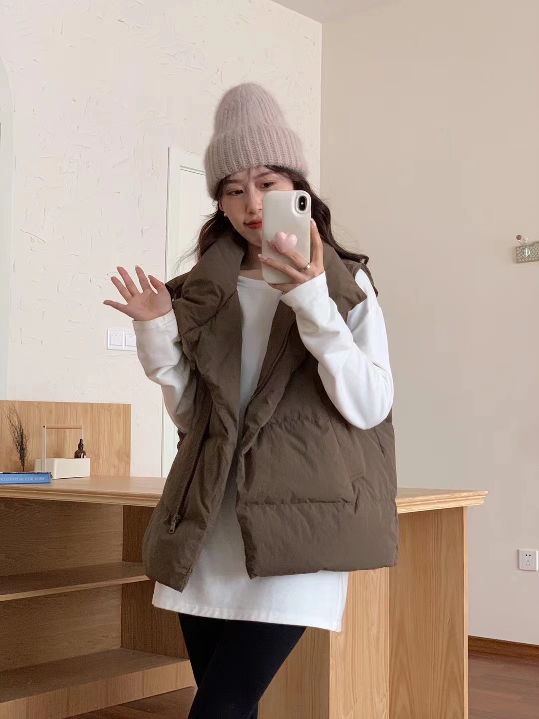 时尚高端外穿羽绒马甲女2023冬季新爆款韩版纯色面包服白鸭绒外套