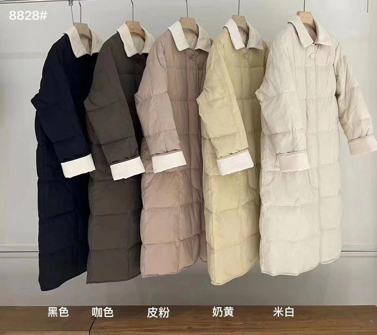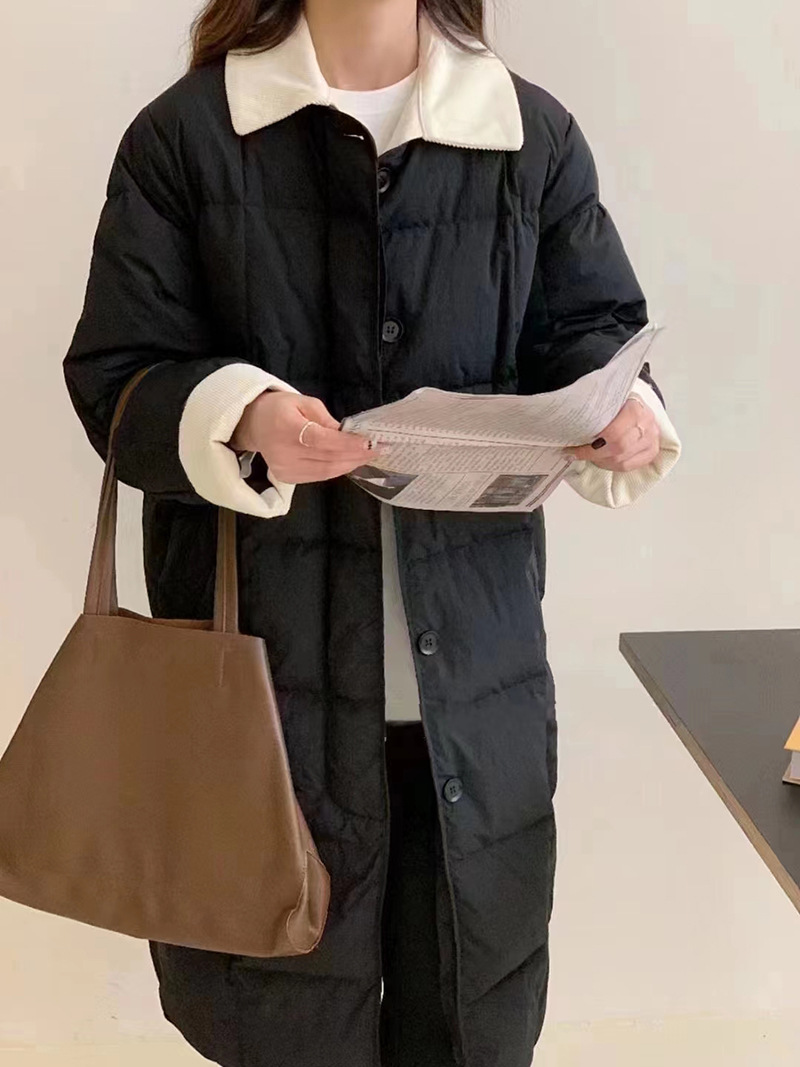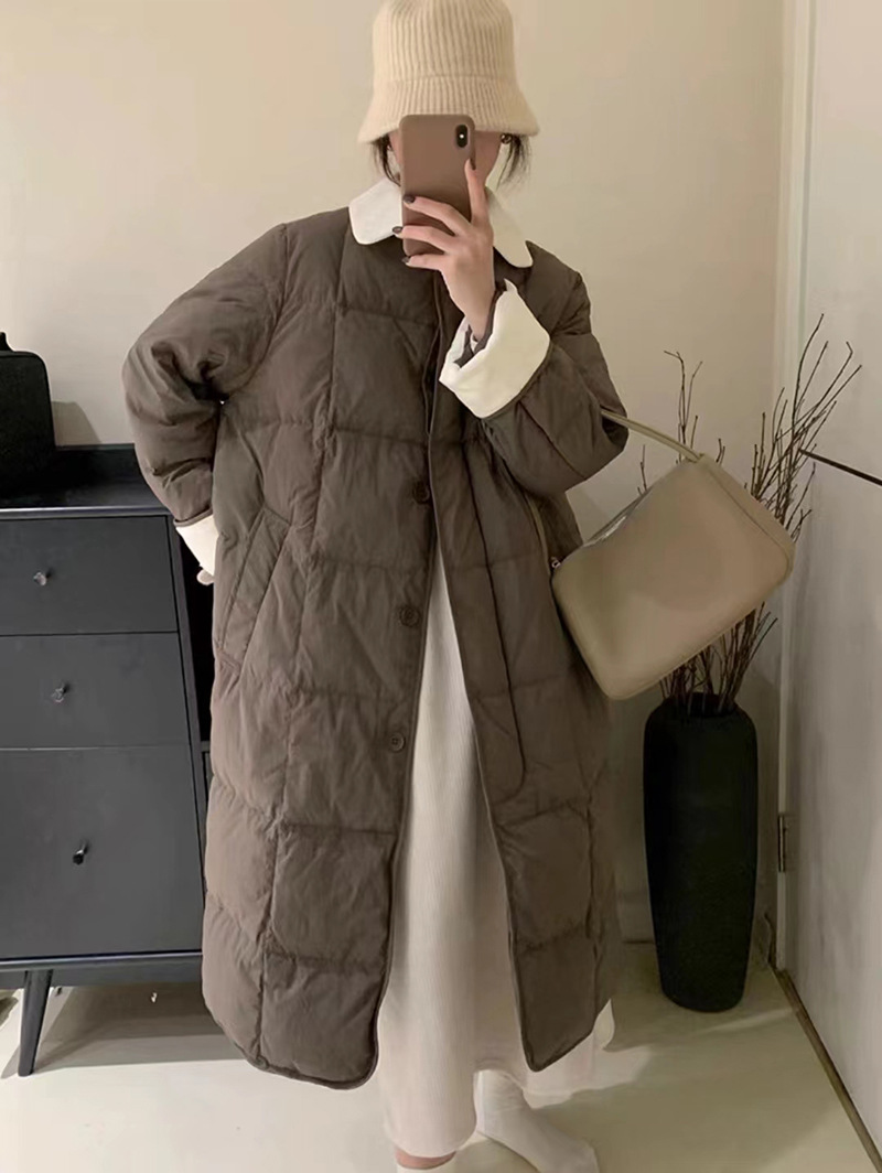 翻领长款羽绒服女中长款2023冬季新款韩系灯芯绒过膝白鸭绒外套潮