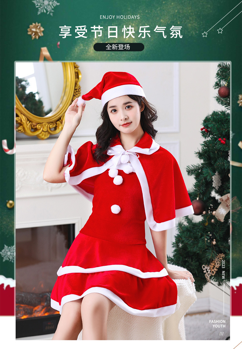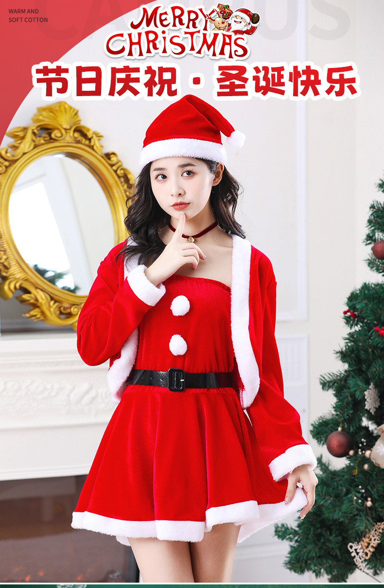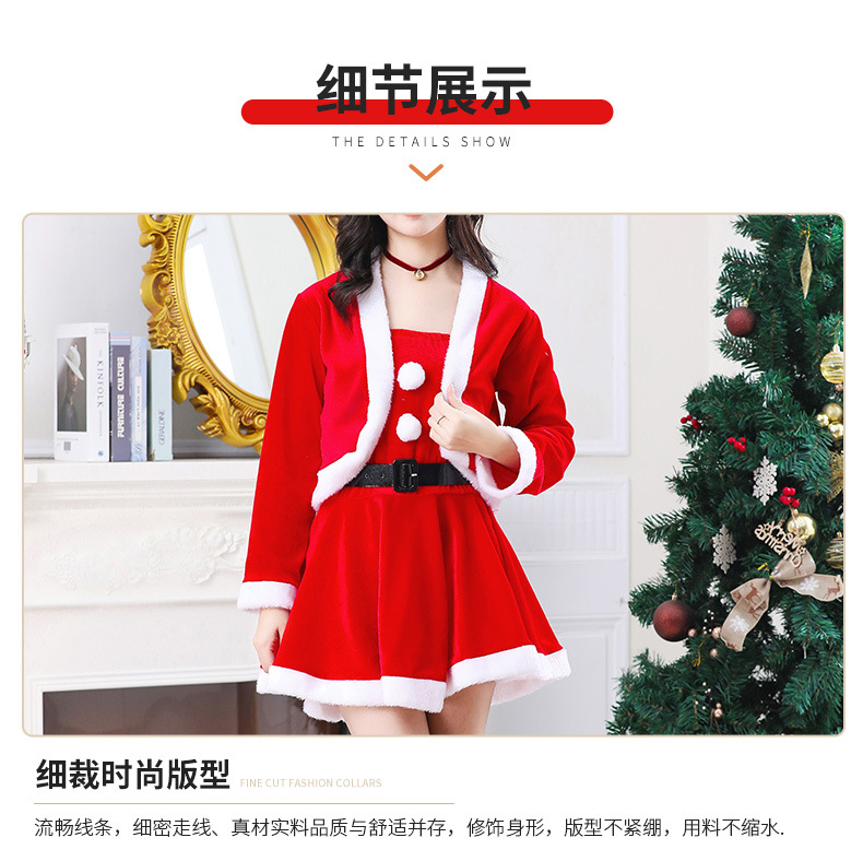 新款圣诞服裙女成人性感圣诞表演服装圣诞老人红色衣服演出服饰