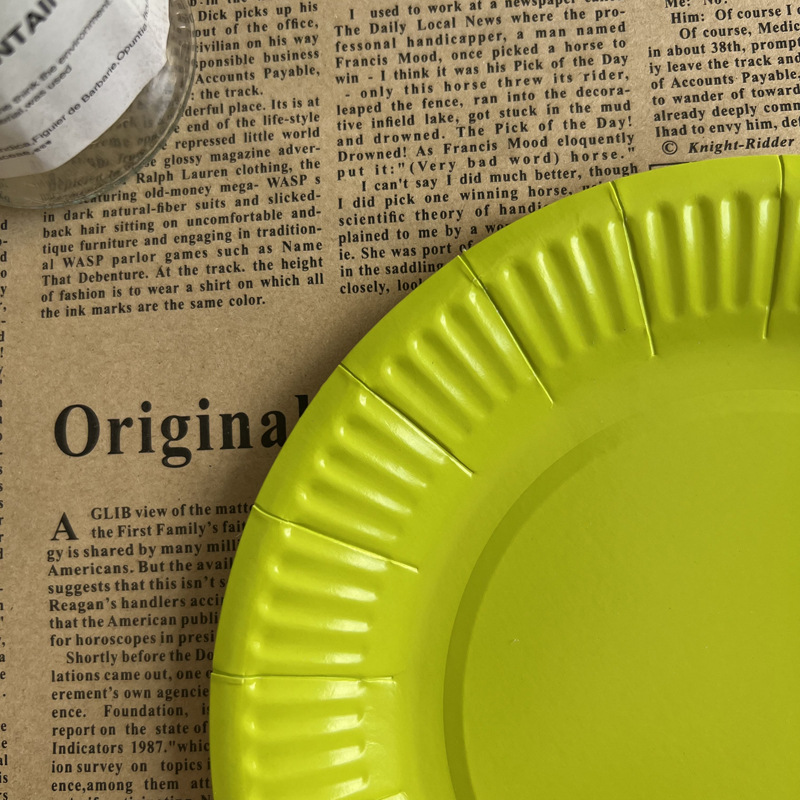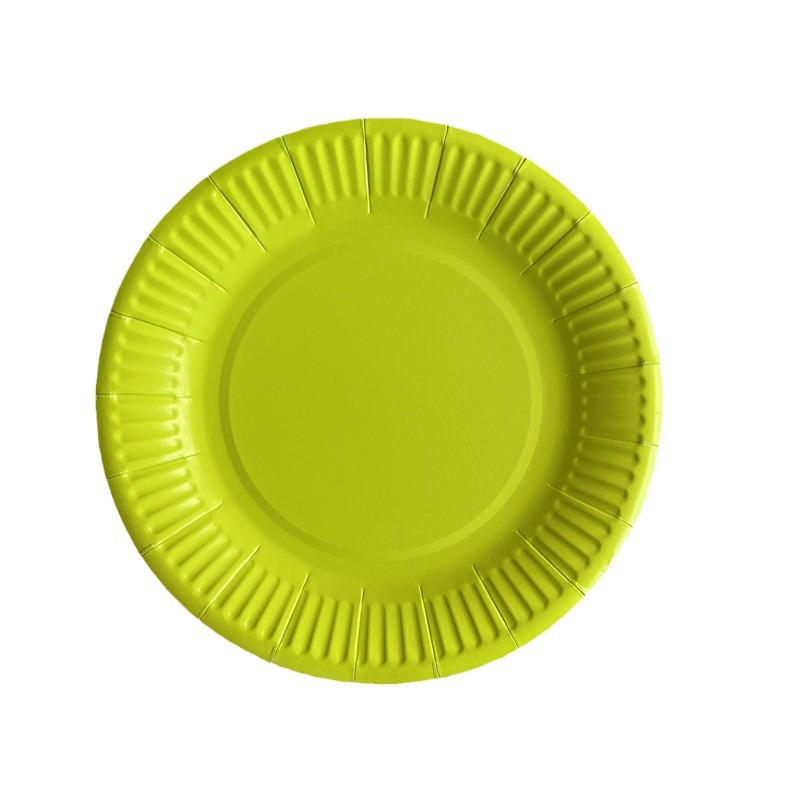 糖果色牛油果绿纸盘一次性白卡纸盘7寸细纹圆盘DIY手工纸盘子纸碟