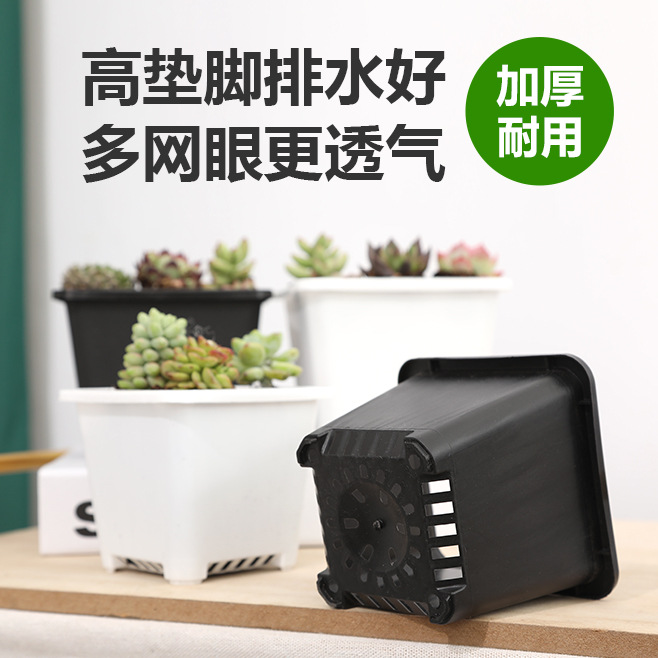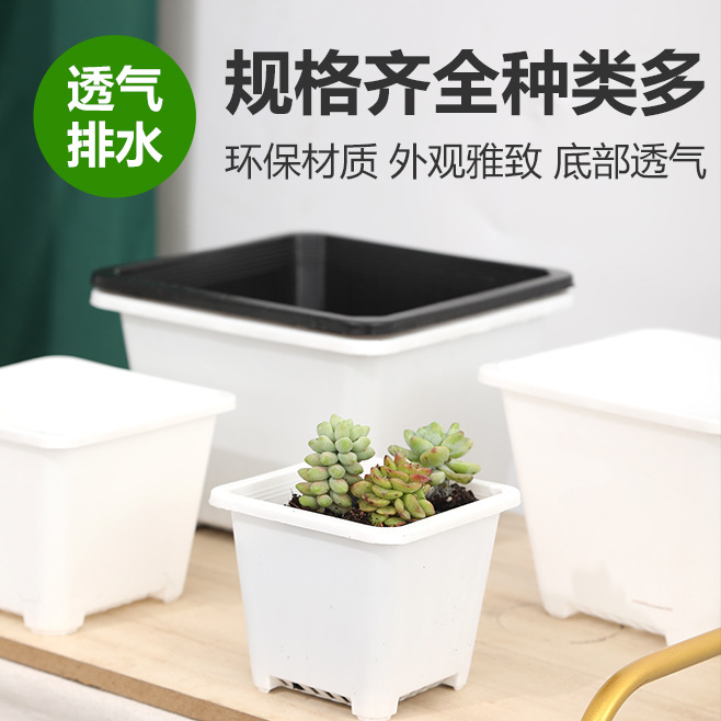 景天盆种植多肉韩式方盆跨境正方形育苗盆黑色白色大小型号黑方盆