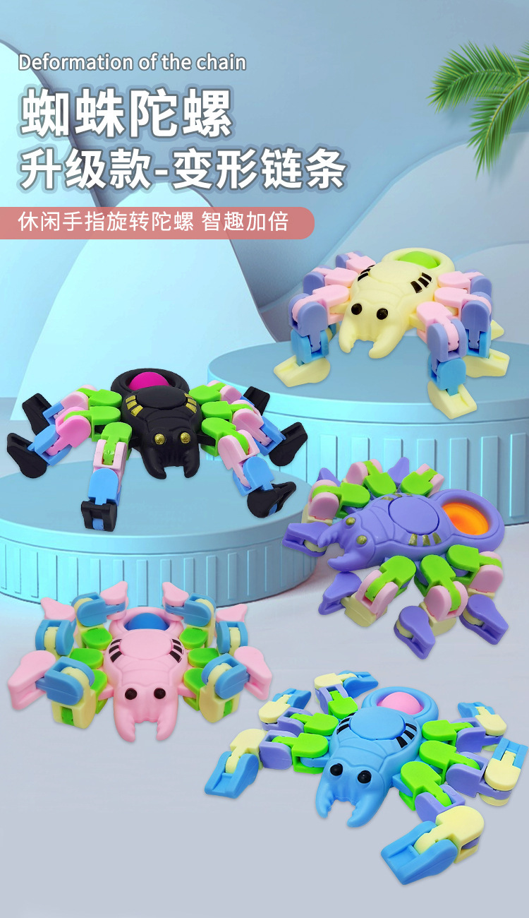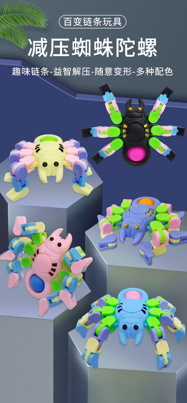 卡通动物儿童机械指尖陀螺百变蜘蛛变形链条发泄减压玩具厂家批发