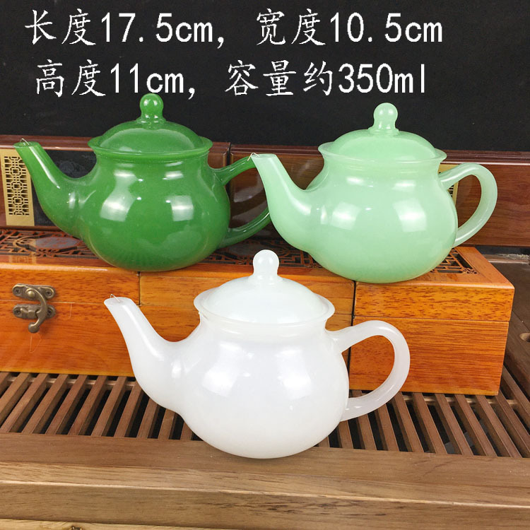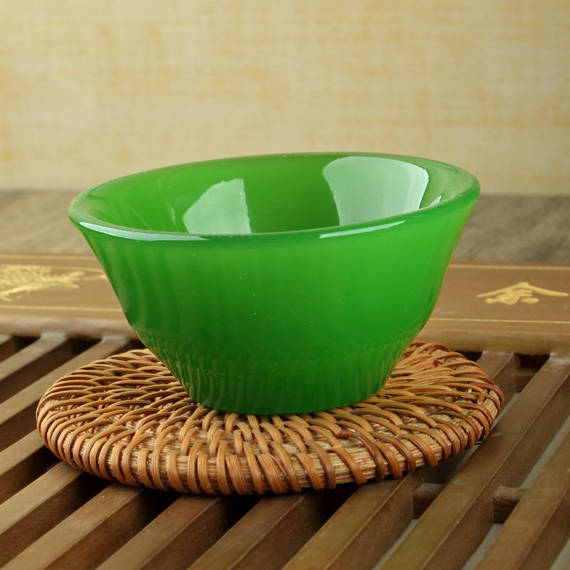 玻璃仿玉碗会销礼品绿色玉石盖碗茶壶浅绿色玉酒杯玉碗玉杯厂家