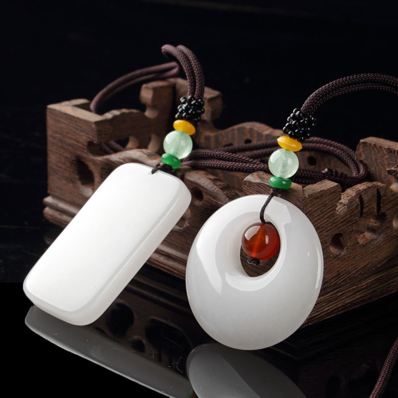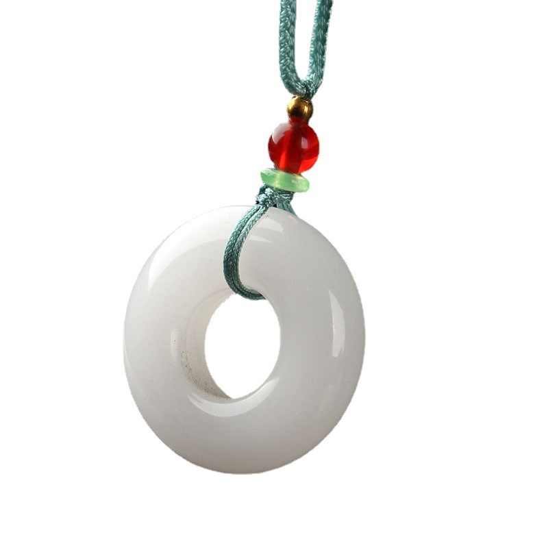 新疆白玉金丝玉吊坠 竹节平安扣无事牌男女款玉佩玉牌挂件批发