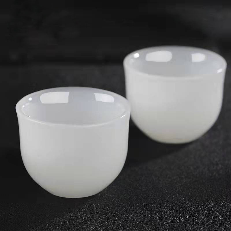 绿色玉石小酒杯白玉玻璃玉石杯厂家仿玉琉璃玉杯复古玉碗杯子