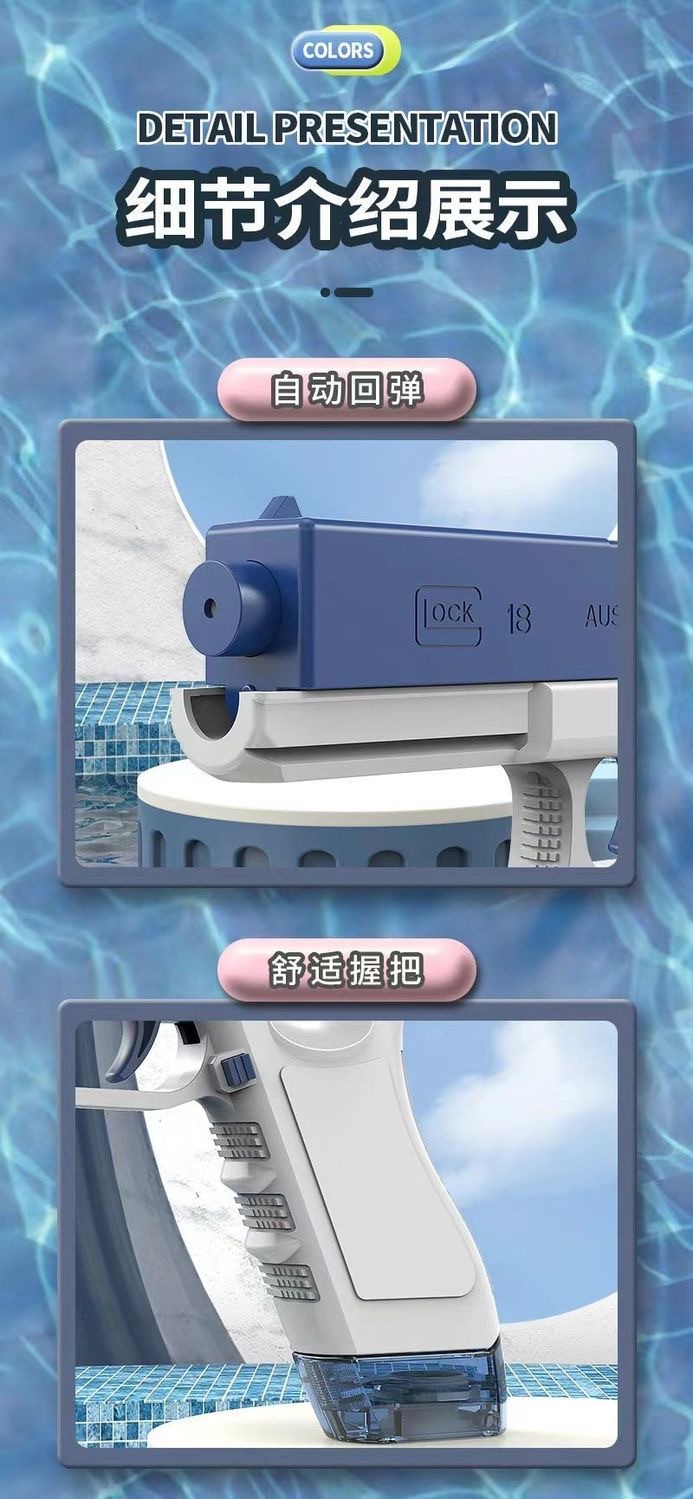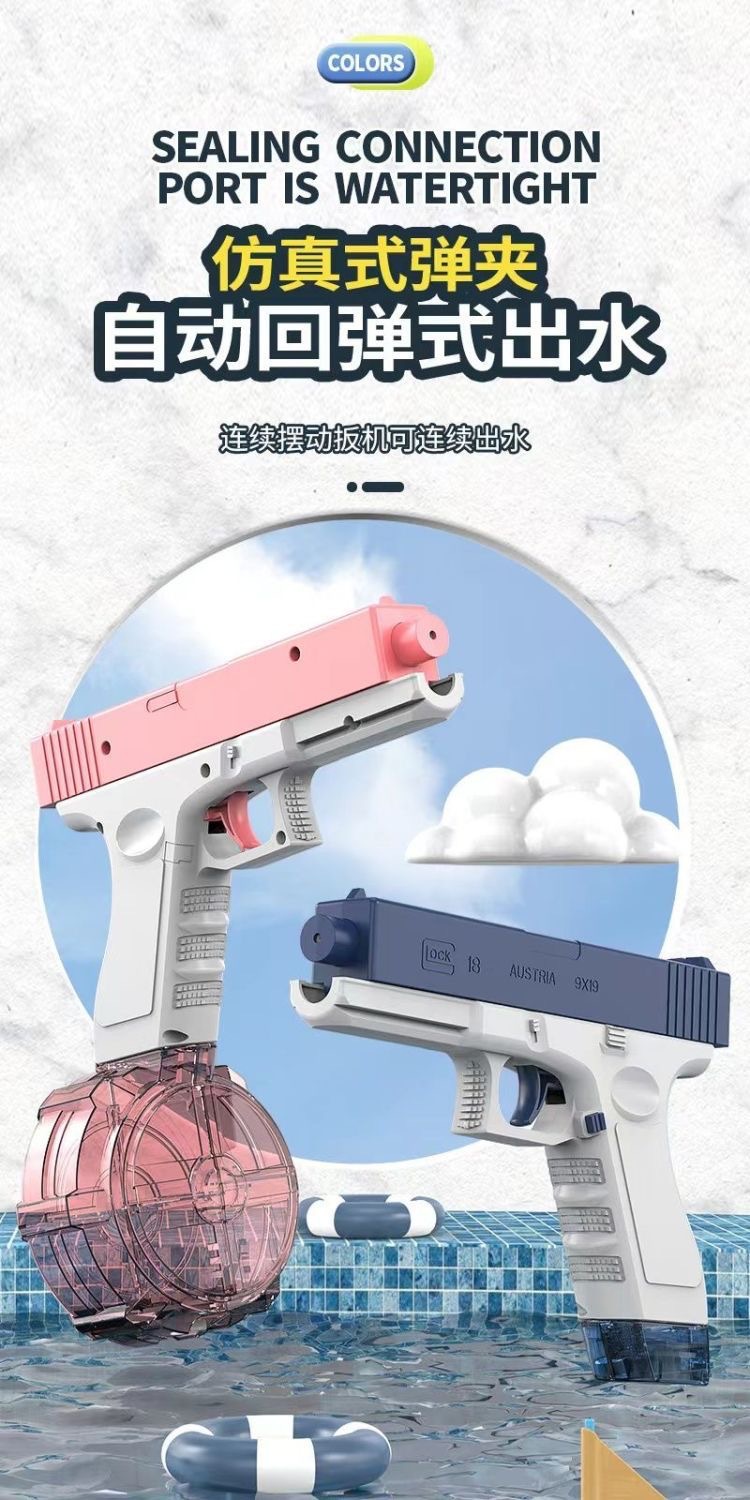 跨境儿童电动水枪连发高速出水格洛克夏季玩水洗澡戏水沙滩玩具