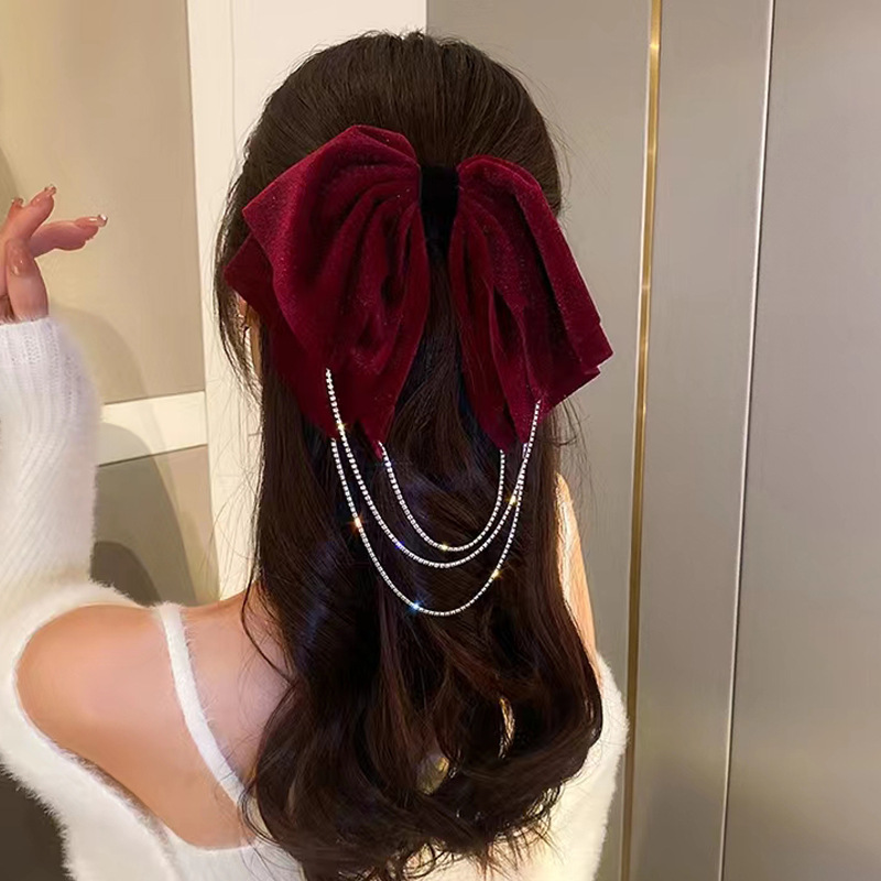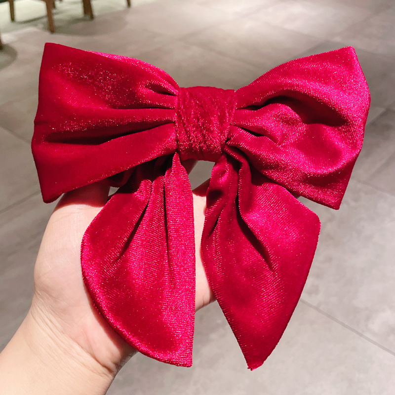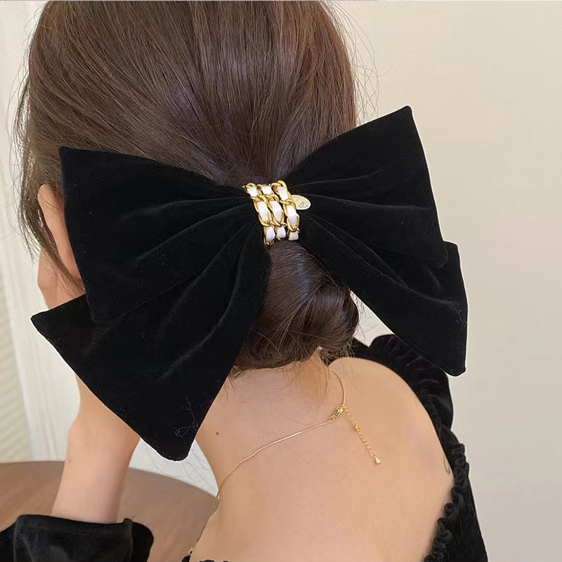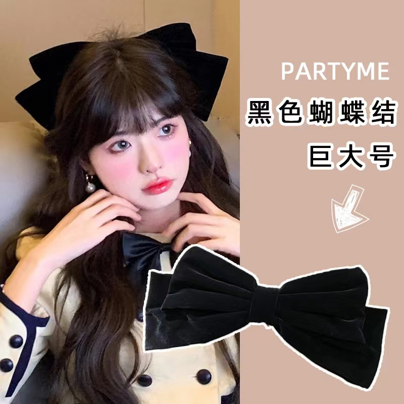 法式高级感红黑丝绒蝴蝶结头饰发夹女气质后脑勺发卡头饰弹簧夹子