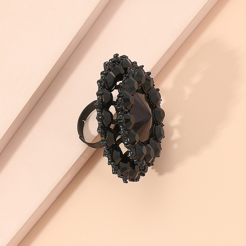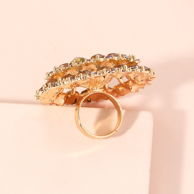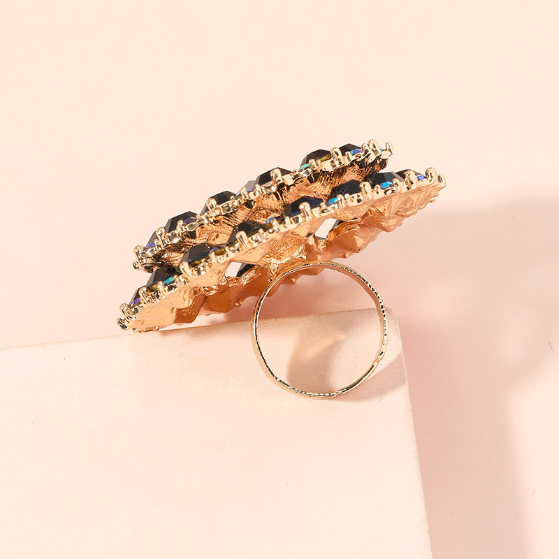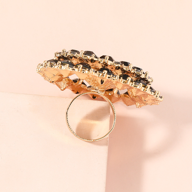 复古夸张高档大气满钻几何圆形戒指时尚简约欧美新款潮流开口戒指