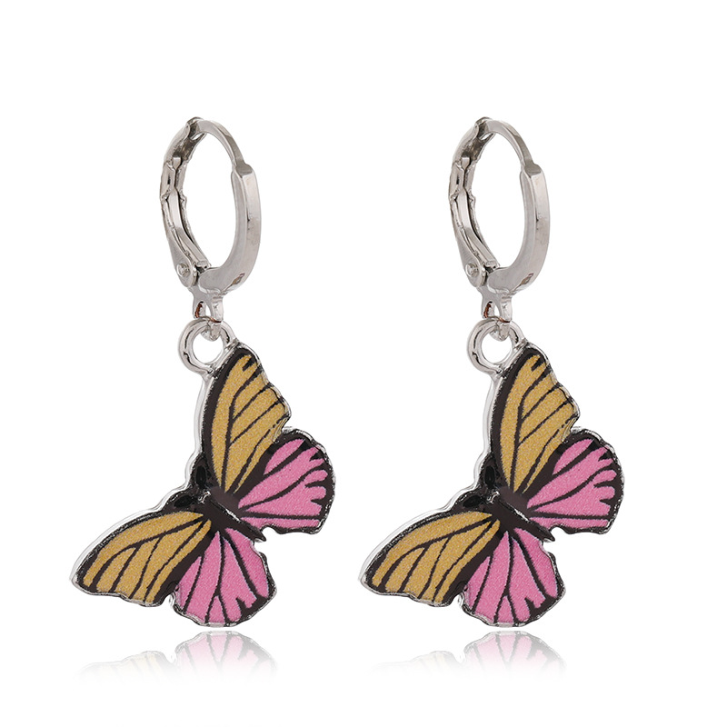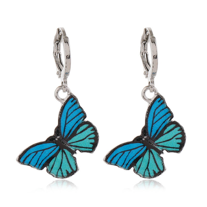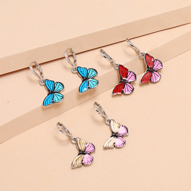 时尚复古ins彩色蝴蝶滴油3件套耳环日韩清新个性气质百搭套装耳环